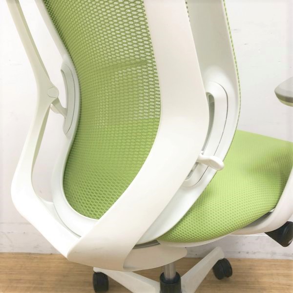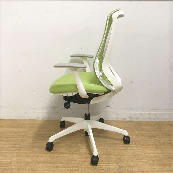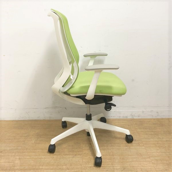 前傾機能に定評のあるオフィスシーティング オカムラ シルフィー ライムグリーン デザインアーム(T字肘) 4脚入荷- 名古屋千種店