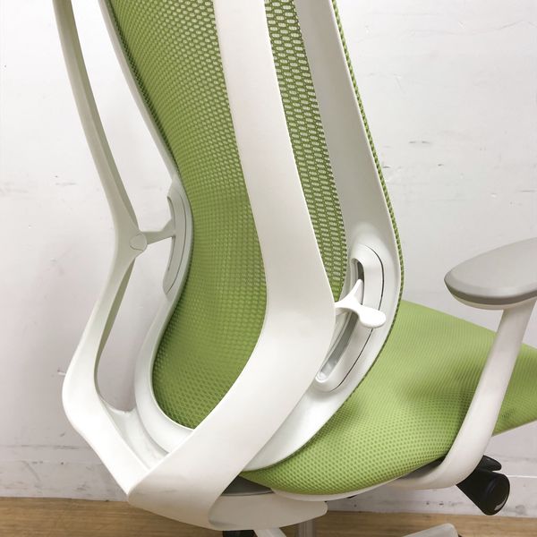 【在庫入替セール品】【人気のシルフィチェアヘッドレスト付きが1脚限定入荷!】オカムラ シルフィ ライムグリーン エクストラハイバック ホワイトフレーム デザインアーム(固定肘) 前傾チルト機能付き