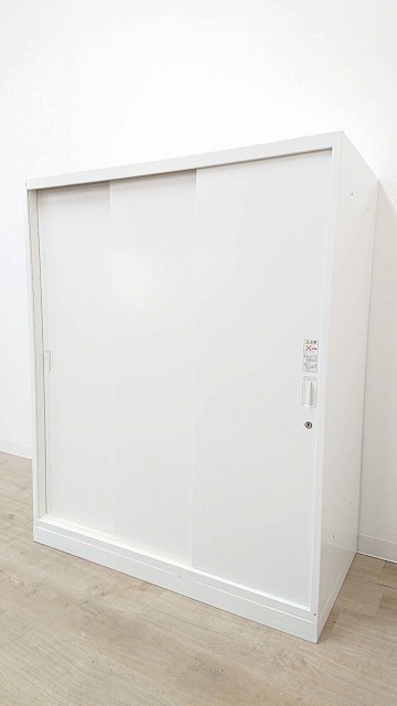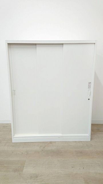 オカムラ製 人気レクトラインシリーズ ホワイト シリンダー W800xD450XH1050 3枚引戸 ※ベースなし 3枚引き違い書庫!!