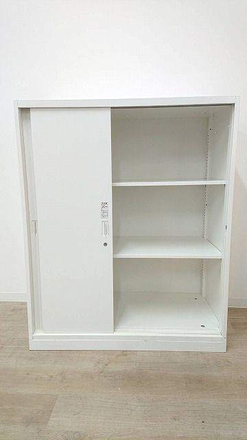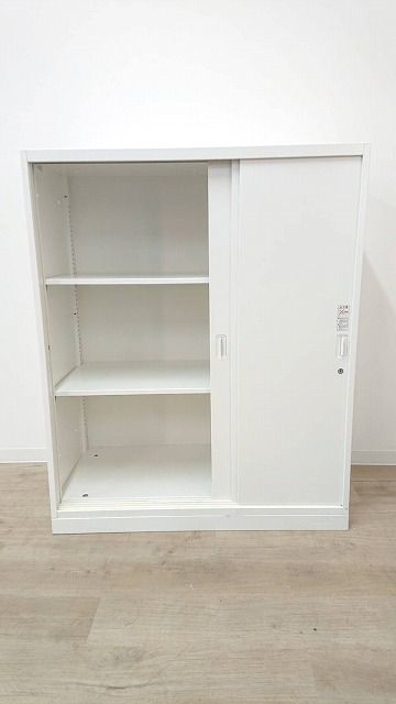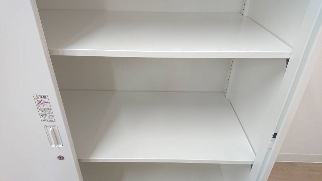 2枚引き戸書庫 オカムラ レクトライン 鍵付き シリンダー錠 ホワイト 天板無し スライド式の扉のため導線を邪魔しません