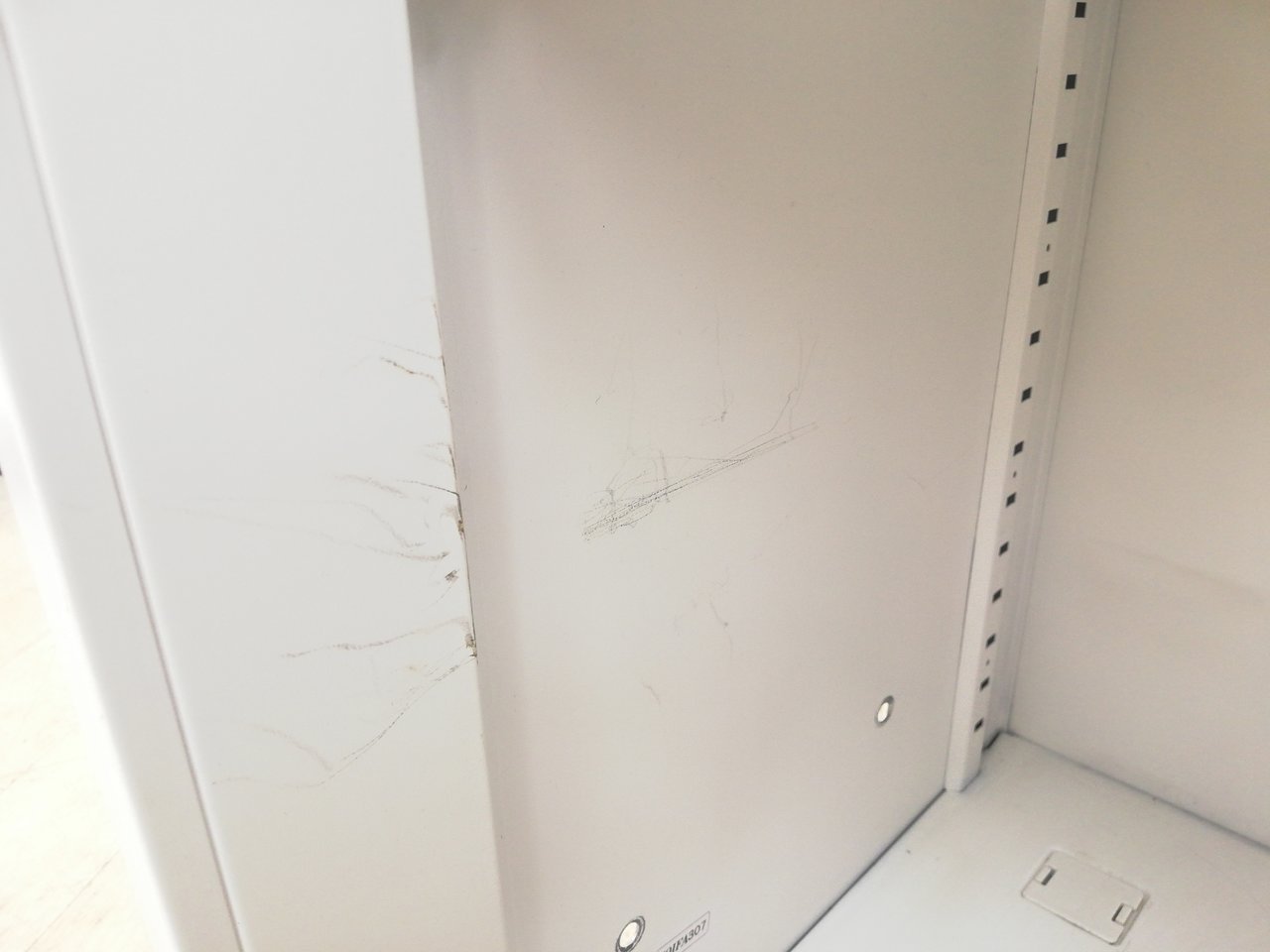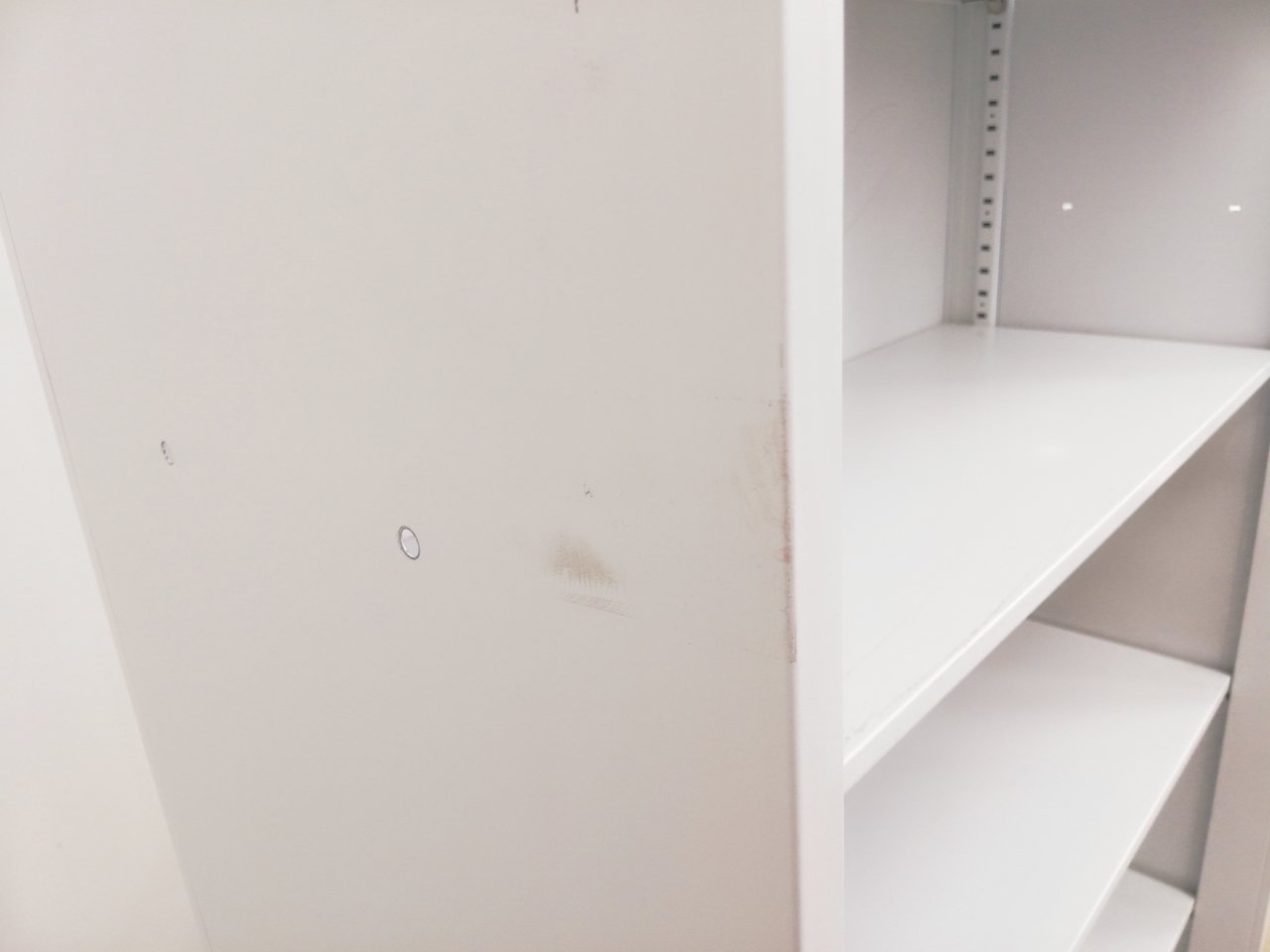 - 一部不具合ありそ引出の開閉不可、施錠不可、棚板無しといったの書庫の本来の効用を果たすための機能以外の一部が使用不可(例、扉、引出の開閉がしづらいなどがある。 )