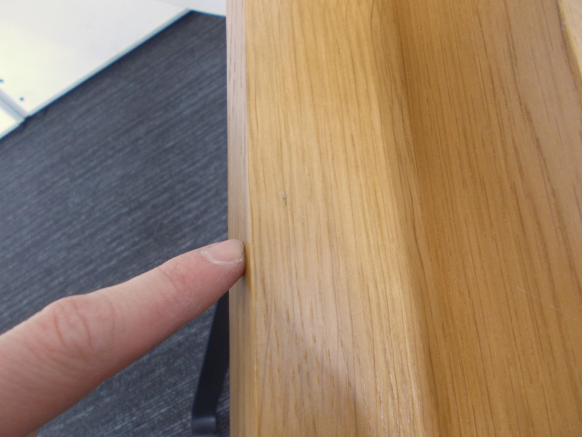 - 目立つ箇所あり傷・凹みが多数、深い傷・凹みが一部ある。(例、天板、幕板、棚板、サイド部分、脚部等にある。)