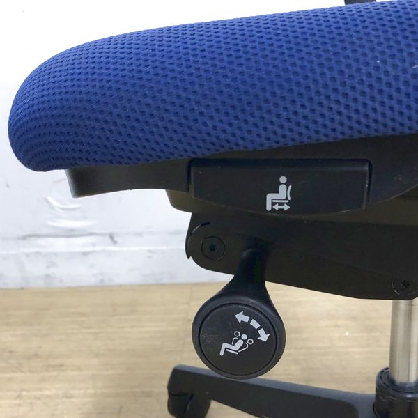 - 座面の左にあるレバー操作により、座面の奥行き調整が可能です。(ストローク:50mm)