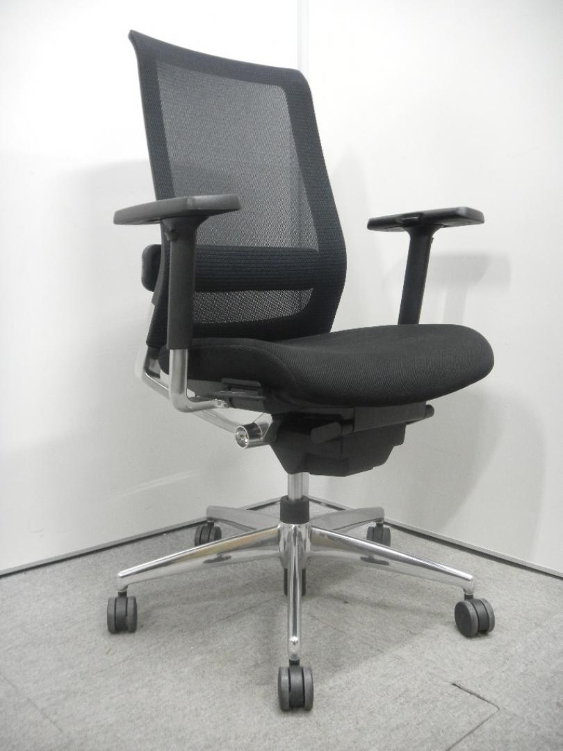 【スマートなデザインの上質チェア!】■コクヨ製 エアフォート 肘付ハイバックチェア ■ブラック ランバーサポート付き 可動肘