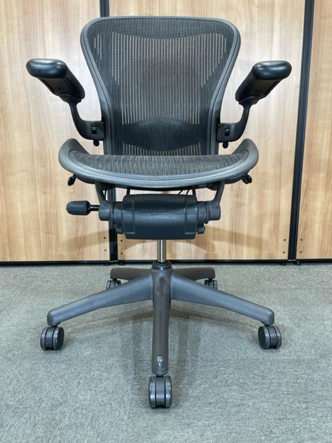 【★状態イマイチのためお安く!】■ハーマンミラー製 アーロンチェア Bサイズ 固定肘 ※キズあり・ランバーサポート無・昇降ガス圧弱めのためお安く!【訳あり特価品】