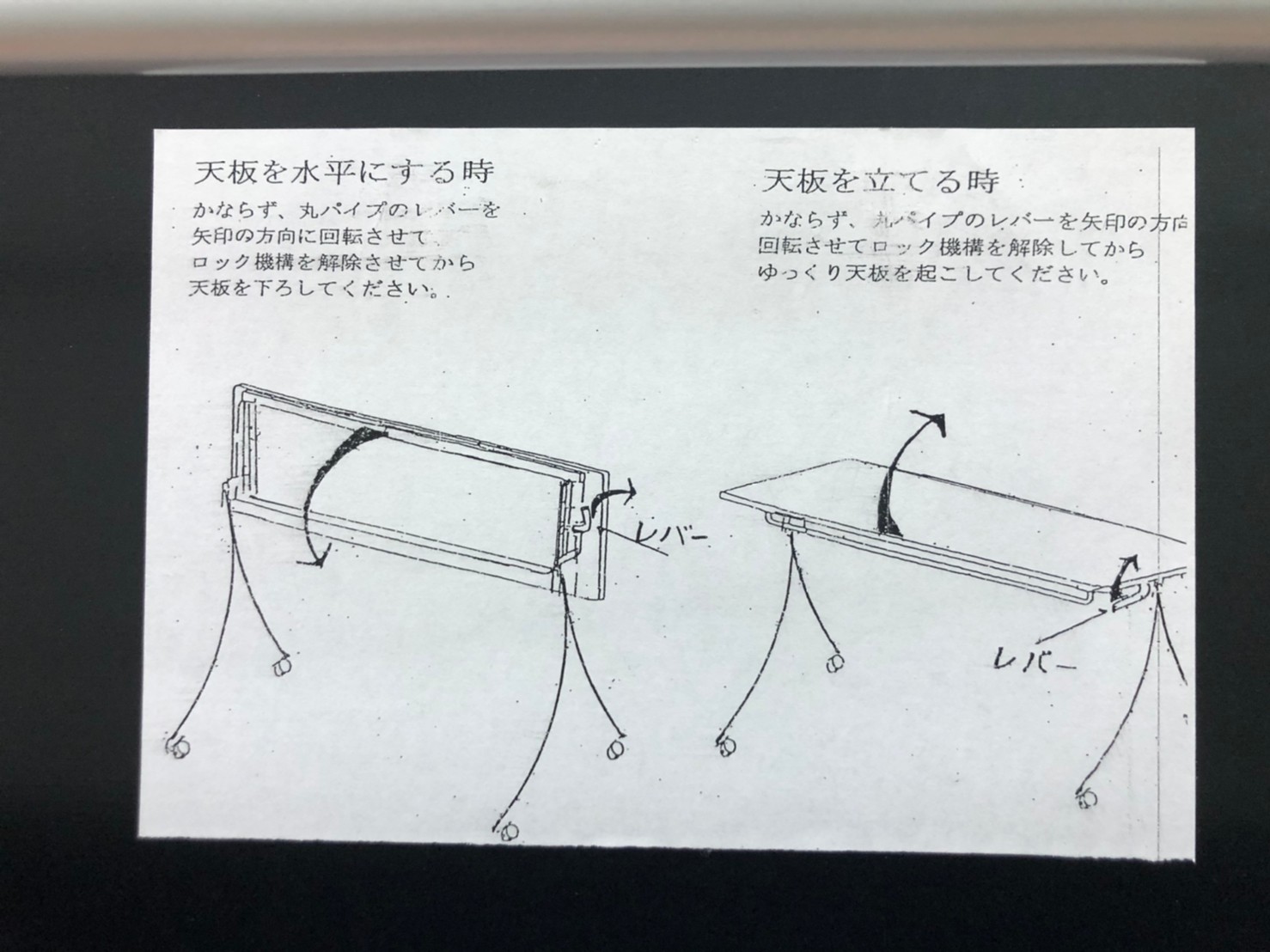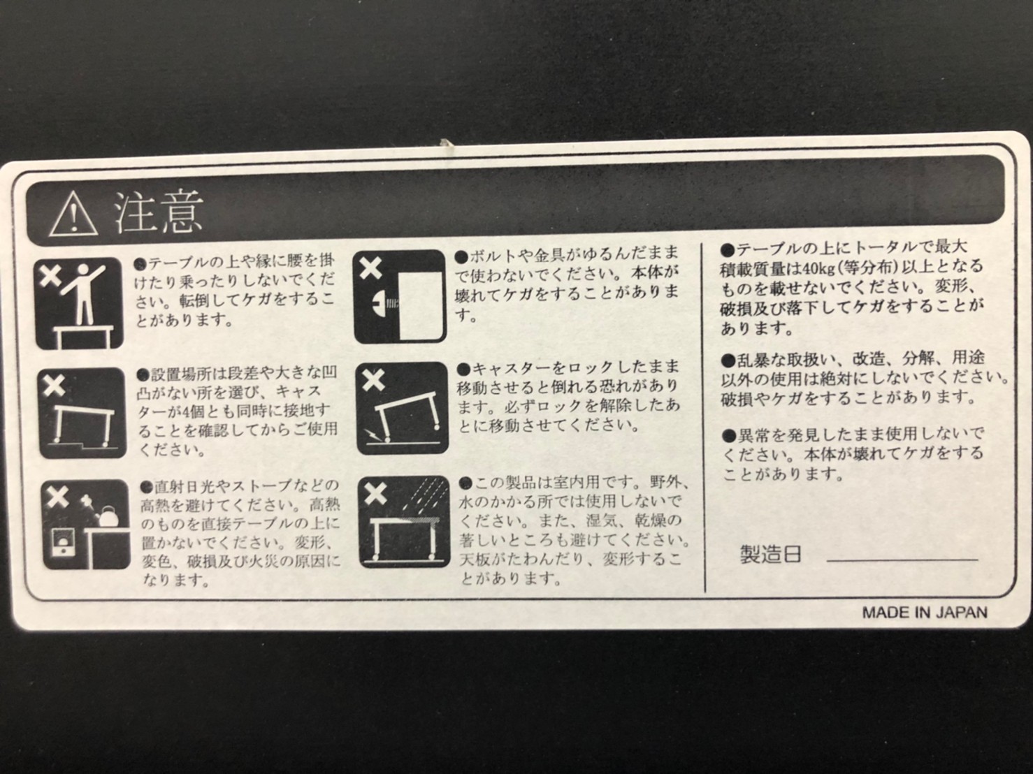- 一部不具合あり天板歪み、アジャスター無し、キャスター使用不可ようなそのテーブルの本来の効用を果たすための機能以外の一部が使用不可な状態。(例、キャスターロッ ク機能使用不可、棚板無し等がある。)
