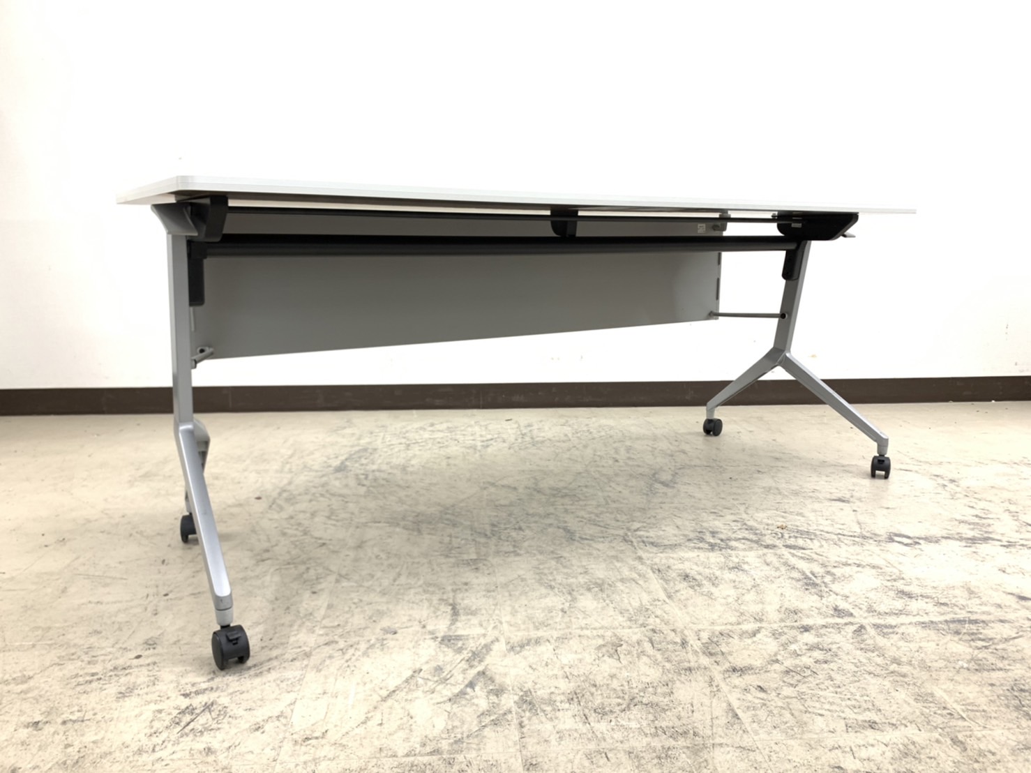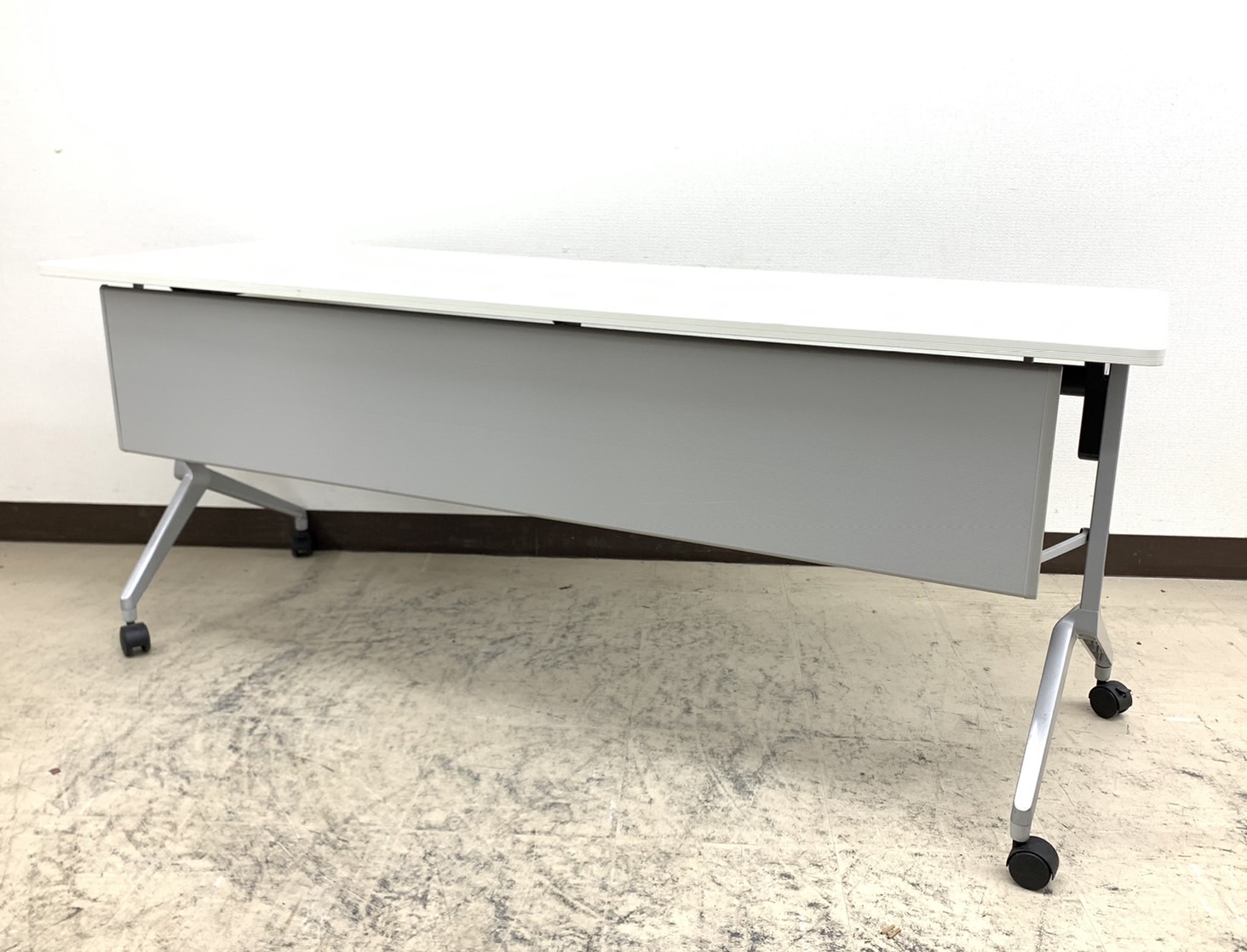 コクヨ製の収納性に優れた、平行スタッキングテーブルでございます。便利なキャスター付きで、天板折り畳みタイプです!