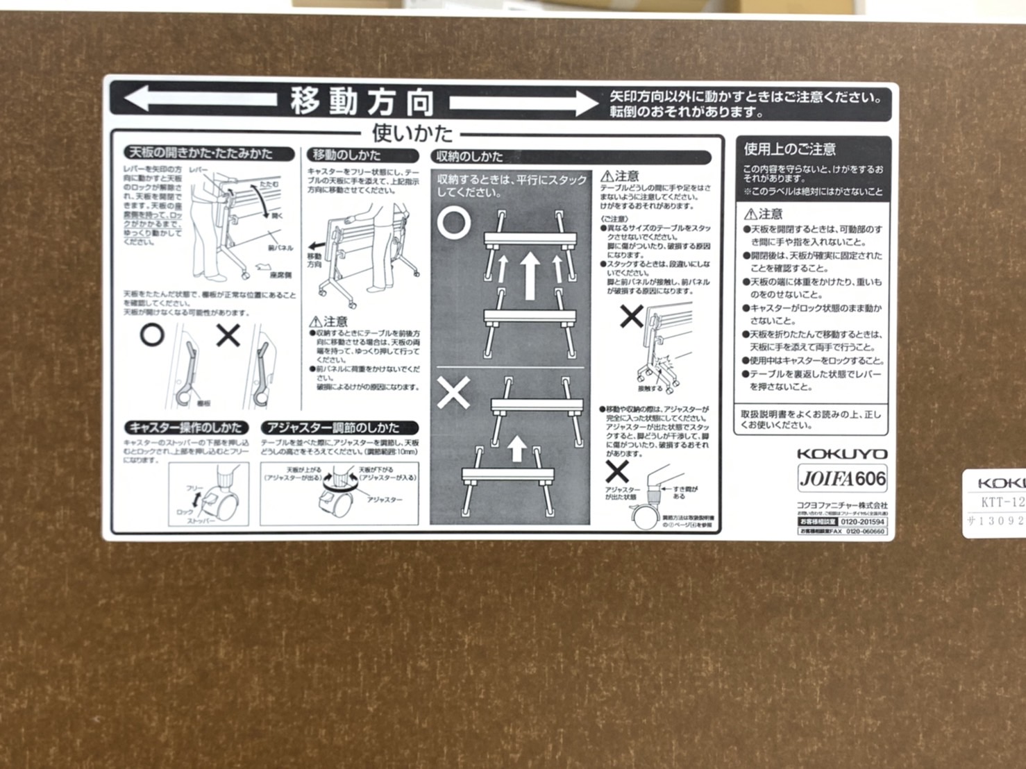 - 一部不具合あり天板歪み、アジャスター無し、キャスター使用不可ようなそのテーブルの本来の効用を果たすための機能以外の一部が使用不可な状態。(例、キャスターロッ ク機能使用不可、棚板無し等がある。)