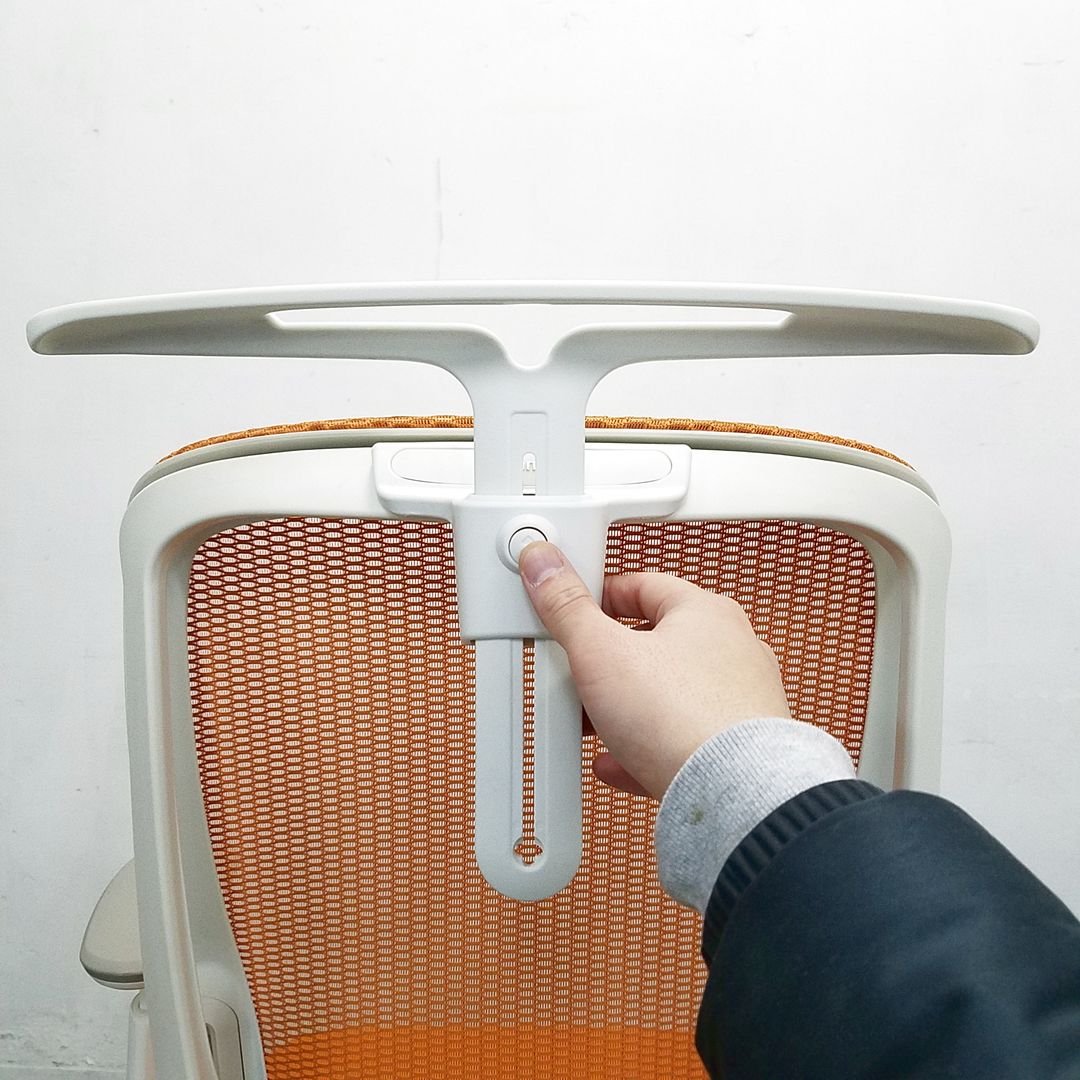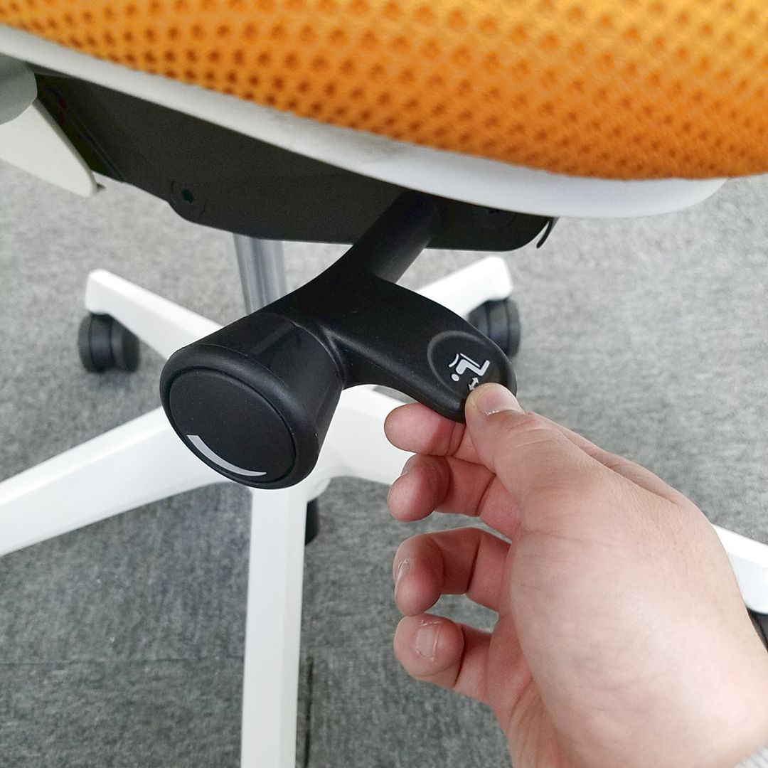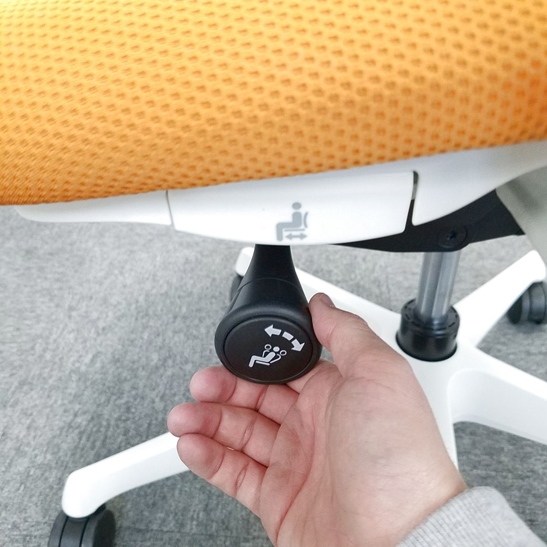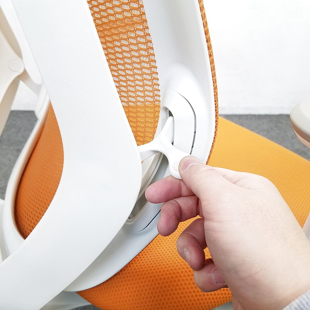 - 座面右下のダイヤル操作で、リクライニングの強弱調整が行えます。これまでのダイヤル式よりも、少ない回転数で、最弱?最強の調整が可能です。