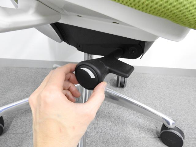 - 座面右下のレバーをスライドさせる「クイックスライドオペレーション」で、リクライニング反力を調整できます。強さの状態が視覚的にわかるため、直感的に操作がおこなえます。