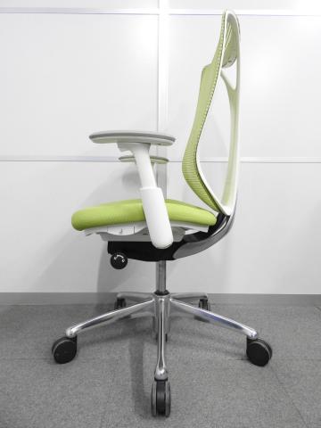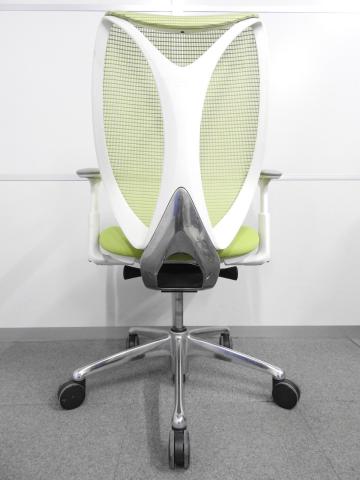 【美しい曲線&透明感のあるメッシュ】■オカムラ製 サブリナチェア ダークグリーン アジャストアーム付 ホワイトボディ ハンガー付【※外部倉庫在庫品(店頭在庫無)】【BR】