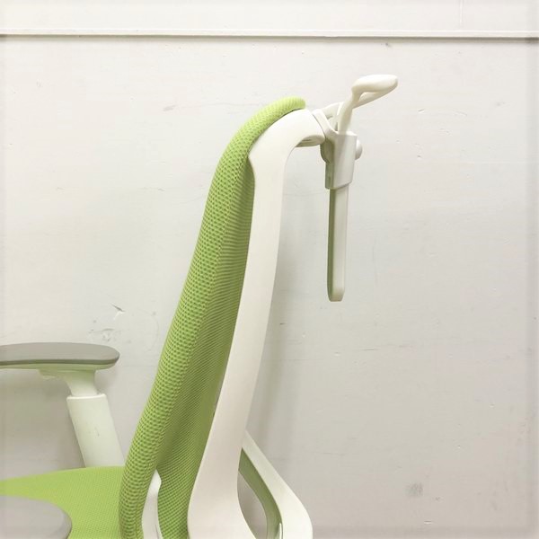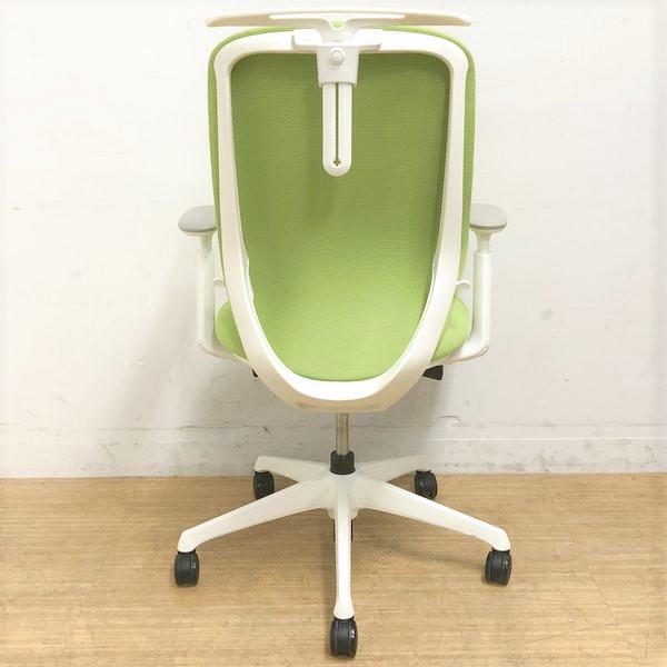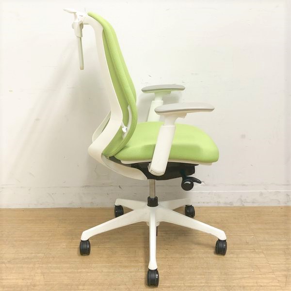 【在庫入替セール品】【人気のシルフィチェアヘッドレスト付きが1脚限定入荷!】オカムラ シルフィ ライムグリーン エクストラハイバック ホワイトフレーム デザインアーム(固定肘) 前傾チルト機能付き
