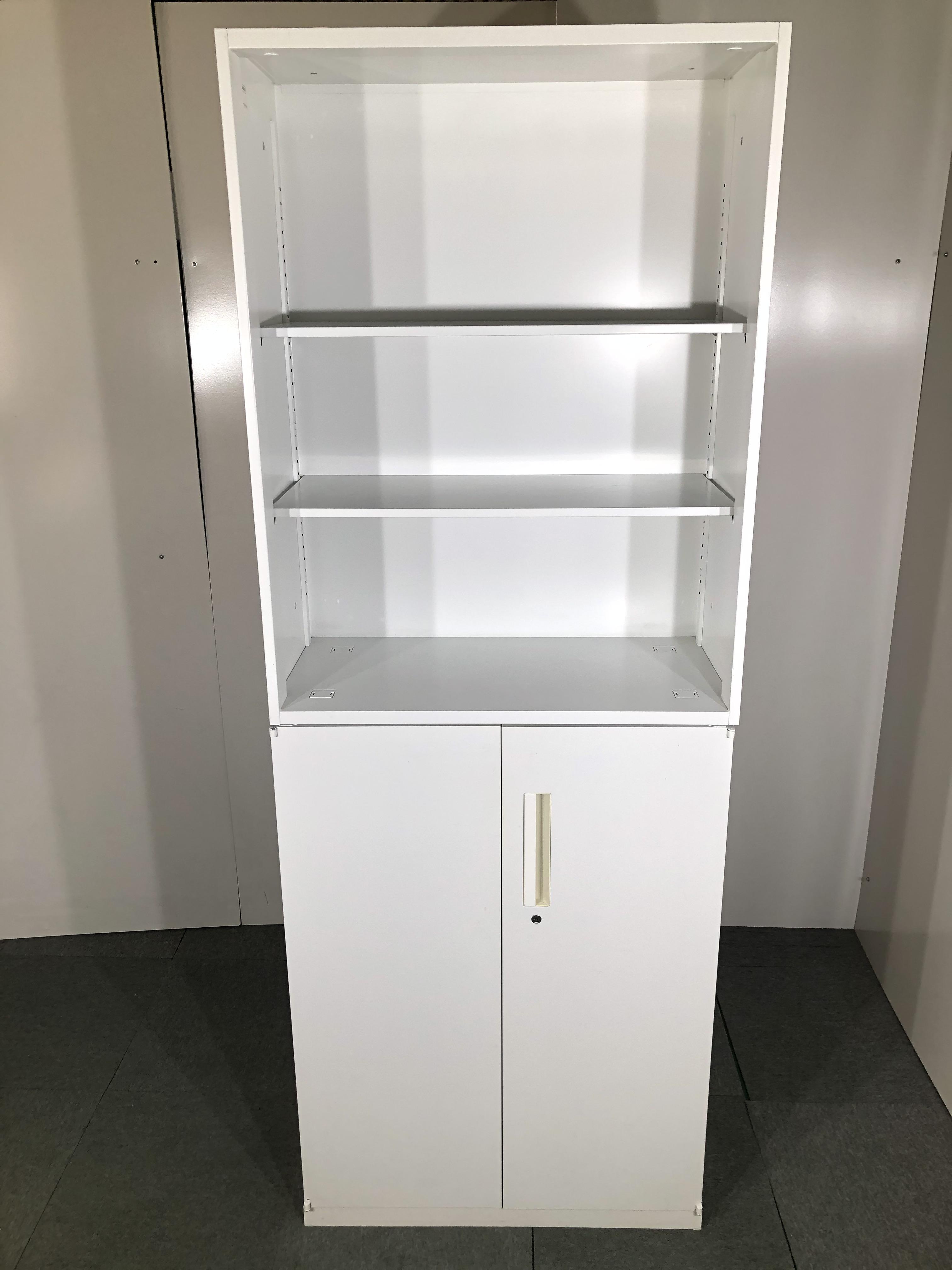 【上下書庫セット】|両開き+オープン|ハイキャビネット|ホワイト|収納|希少|【関西倉庫在庫】- 大阪・堺店