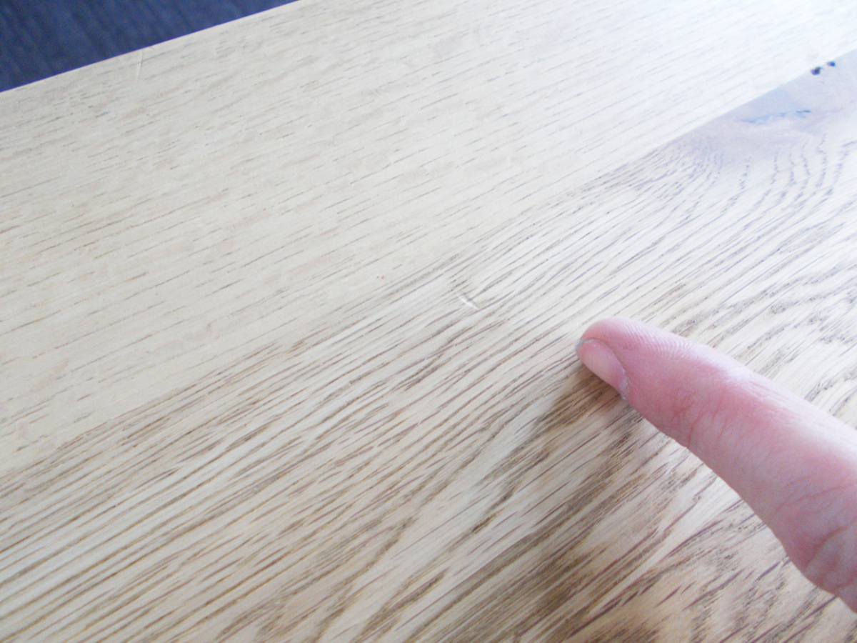 - かなり強い濃い黄ばみ・変色が商品全体にある。(例、天板、幕板、棚板、サイド部分、脚部等にある。)