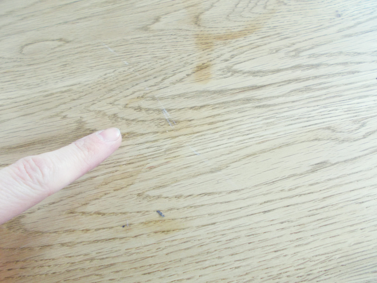 - 目立つ箇所あり傷・凹みが多数、深い傷・凹みが一部ある。(例、天板、幕板、棚板、サイド部分、脚部等にある。)