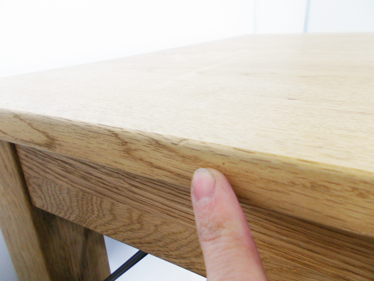 - 目立つ箇所複数あり深い傷・凹みが商品全体にある。(例、天板、幕板、棚板、サイド部分、脚部等にある。)