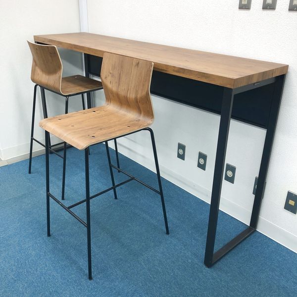 オカムラ アルトピアッツァ 片面カウンター+ハイチェア2脚セット アスティックパイン色 テーブルサイズW1800D450H1000- 名古屋千種店