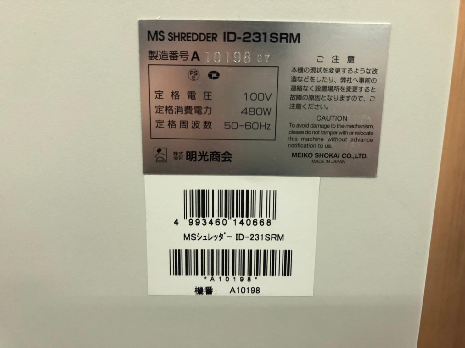 明光商会よりID-231SRMのシュレッダーが入荷です。