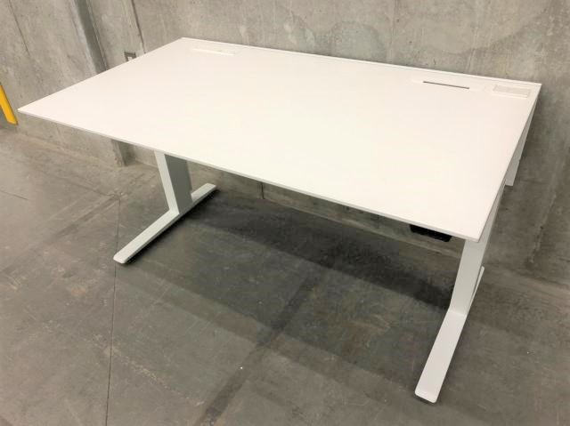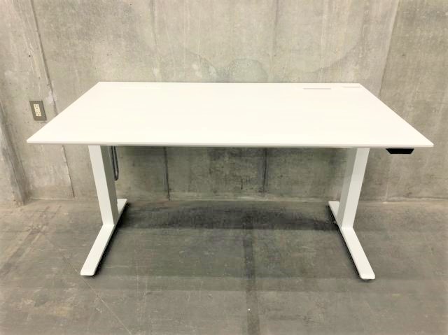 【姿勢を変えてリフレッシュ!】■オカムラ製 上下昇降デスク W1400×D800mm ホワイト ■H650~1250mmに調整できます!【いま人気のスタンディングデスク!】弊社使用欄:A00836056- 川崎店