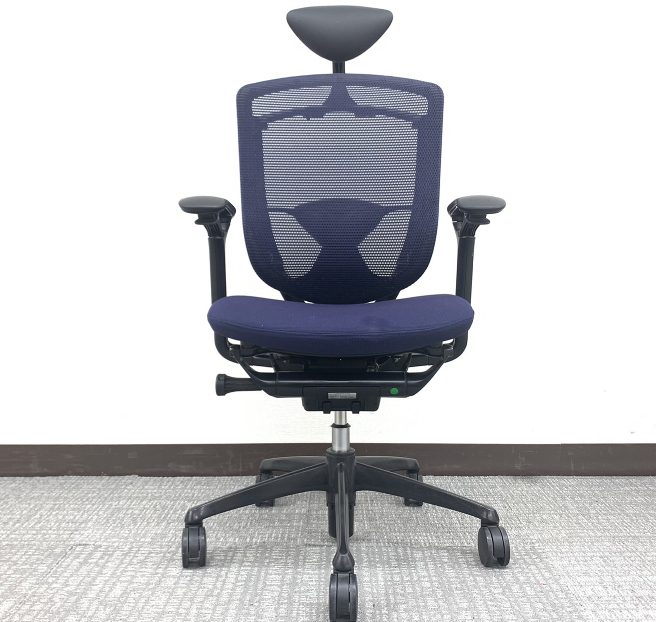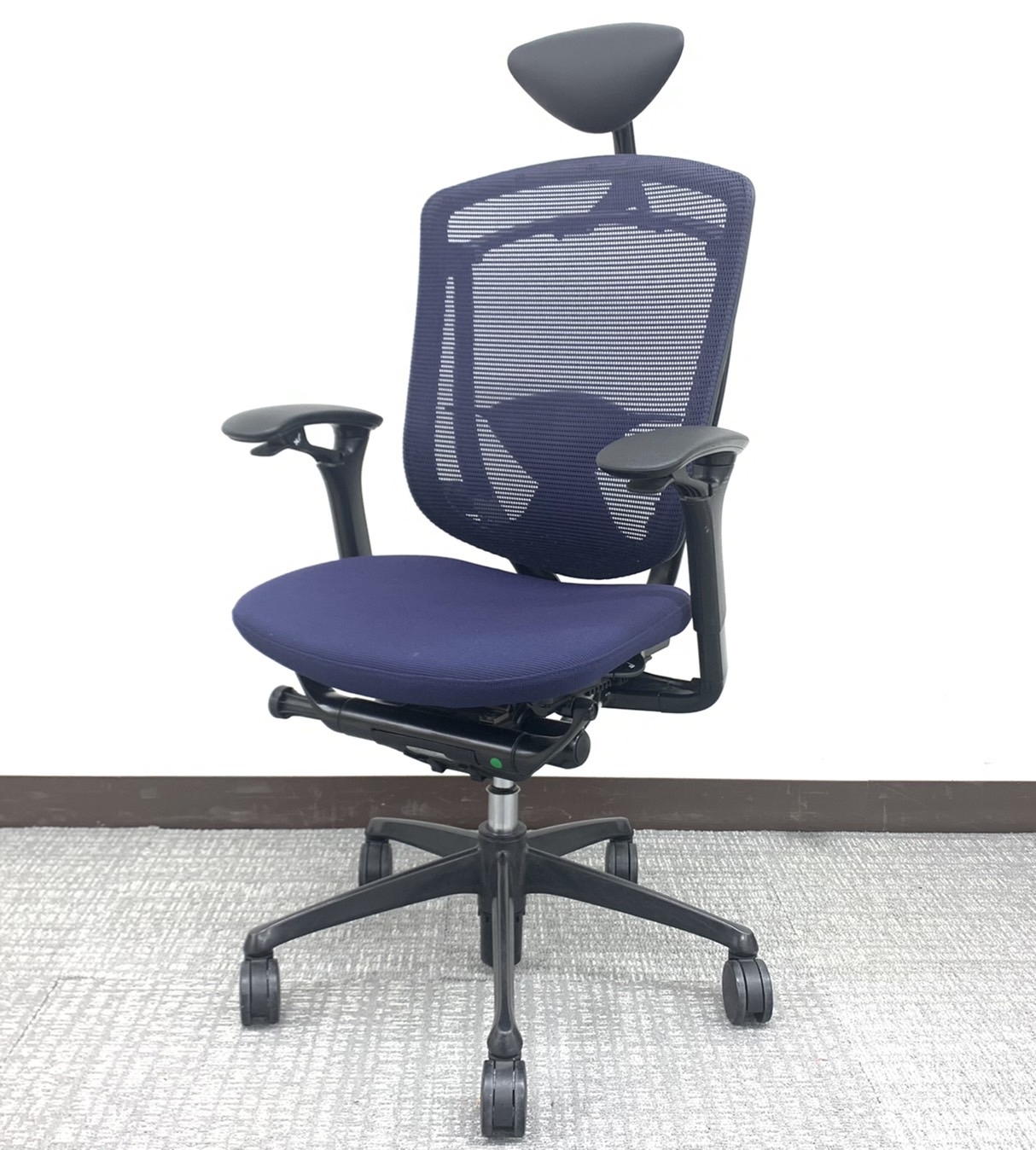 【オカムラ製の最高級チェアが残り1脚限りです!!】オフィスバスターズ 東大阪店 オカムラ製 コンテッサ シリーズ ダークブルー アジャストアーム※可動肘 背/座面メッシュ ランバー 世界で認められた革新的タスクチェア!人間工学に基づいた快適な座り心地を実現! 肘付きハイバックチェア!! 中古 外部倉庫品