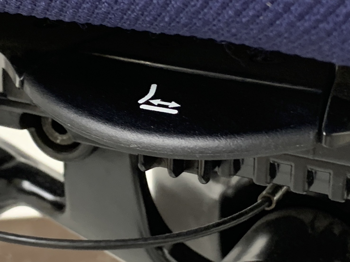 - ロッキングの強弱を調整するダイヤルがございます。体型に合わせてリクライニングの固さを座ったままで調整できます。