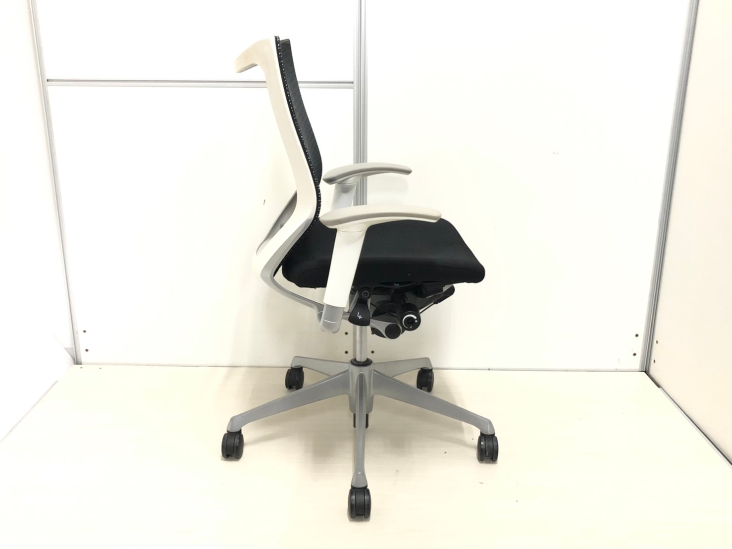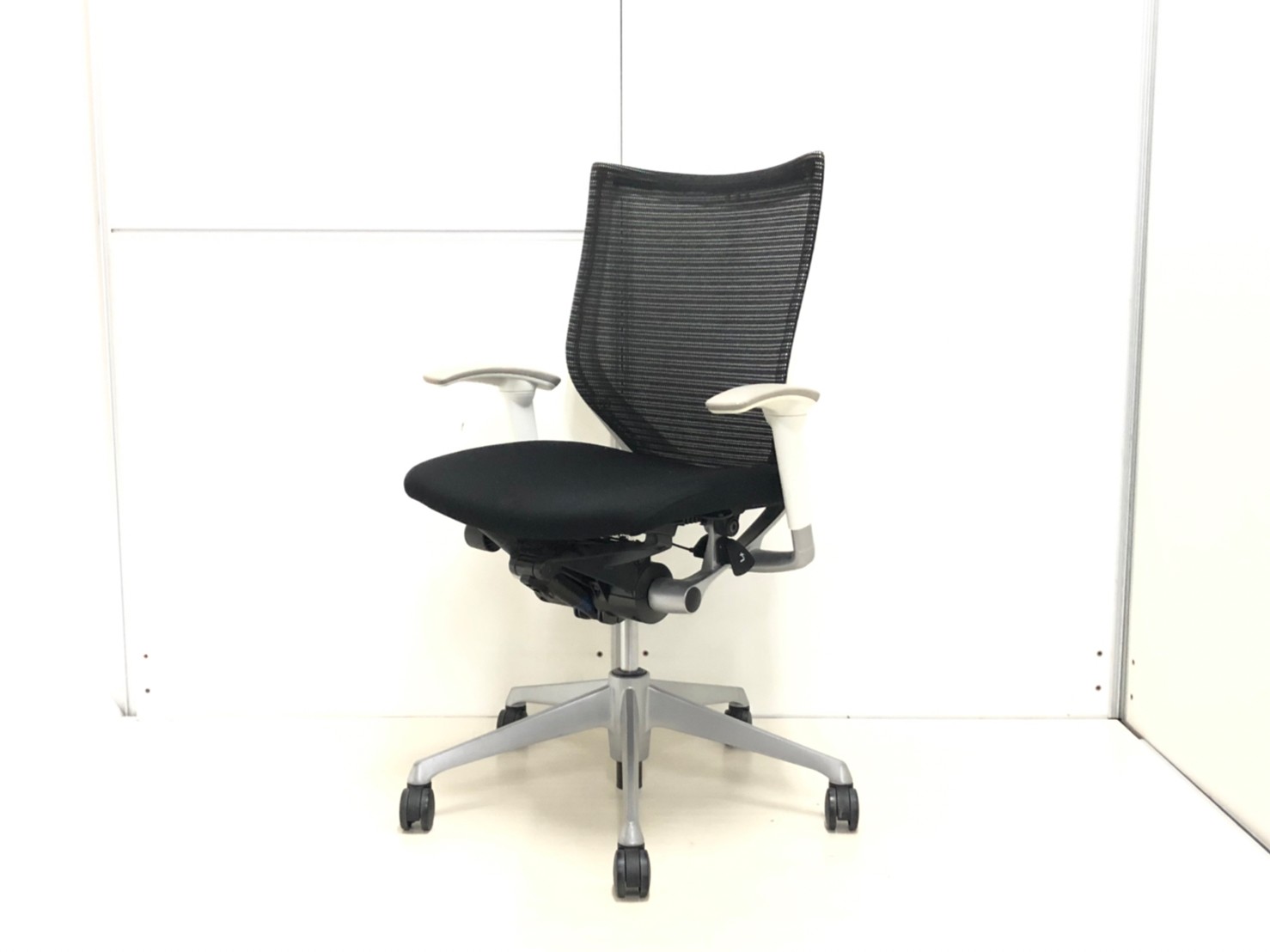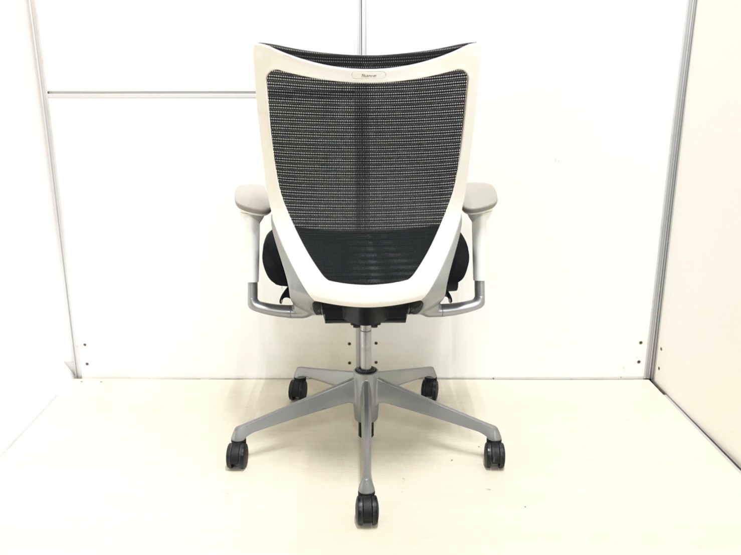 【国産メッシュチェアの代表格!オフィスの執務室、会議室におすすめ!】■オカムラ(okamura)製 バロン(Baron)チェア 肘付 ローバック 背面メッシュ ■固定肘 ■ブラック×ホワイトシェル【AD】