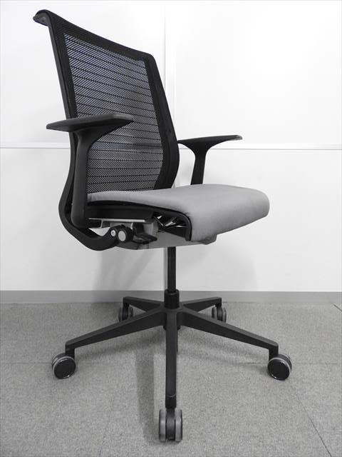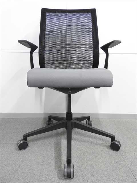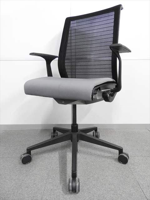 【長時間座る人のための椅子!】■スチールケース製 シンクチェア 肘付 グレー 3Dニット ■自動調整機能で快適な座り心地!.- 川崎店