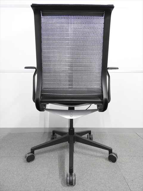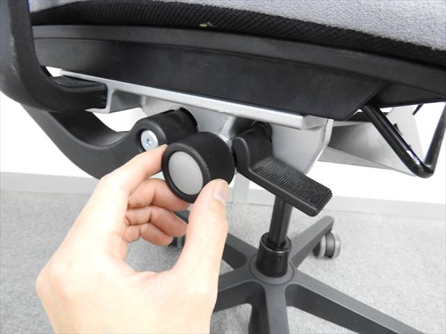 快適な座り心地に不可欠な調節機能である、上下昇降、座面の奥行き調整、リクライニングなどを備えており、操作もわかりやすく好評です。 特に、座面の奥行きは、座面下の左右に通った細いバーで調整でき、座ったままで軽やかに滑るように調整が可能です。 価格面では、新品では高めですが、中古は流通も多く、定価の3割前後の価格で高級チェアの座り心地を手に入れることができます!