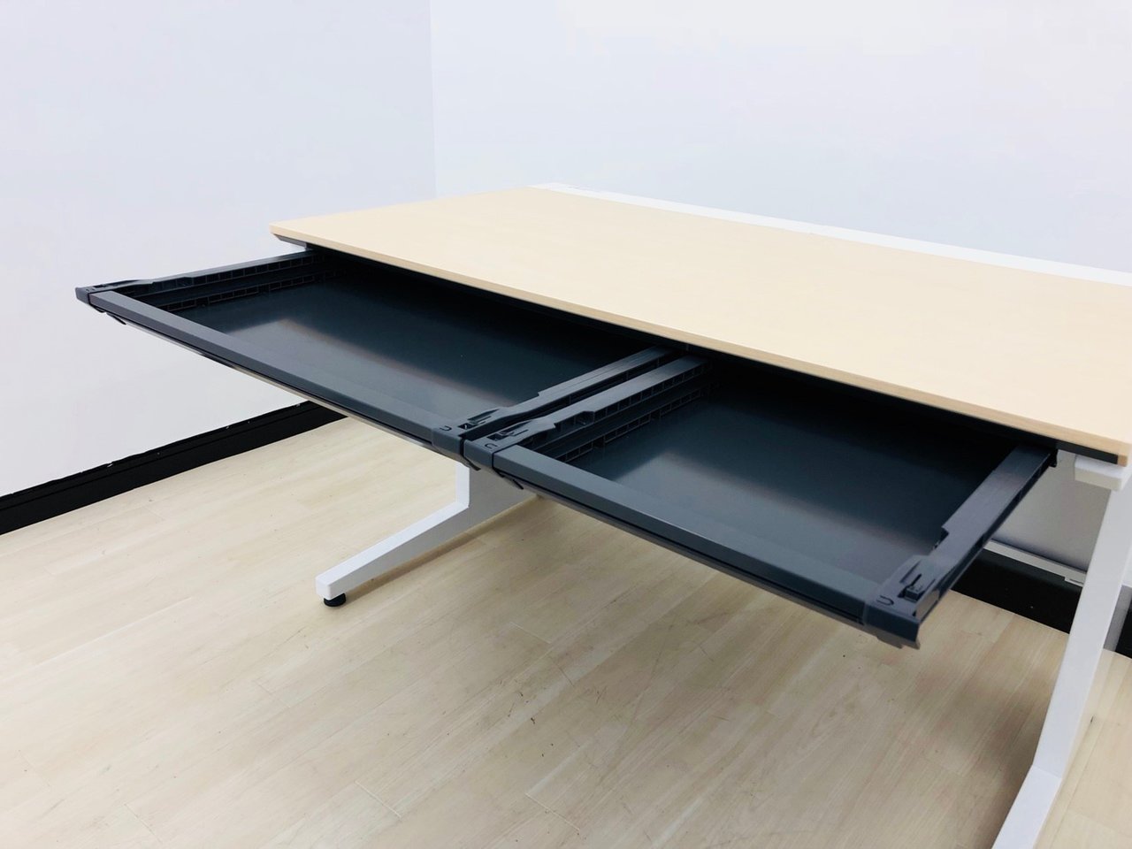 【関西倉庫在庫】■コクヨ(KOKUYO)製 iSシリーズ 平机 引き出し付き ■天板:木目ナチュラル/本体:ホワイト 【弊社使用欄:A01035359】