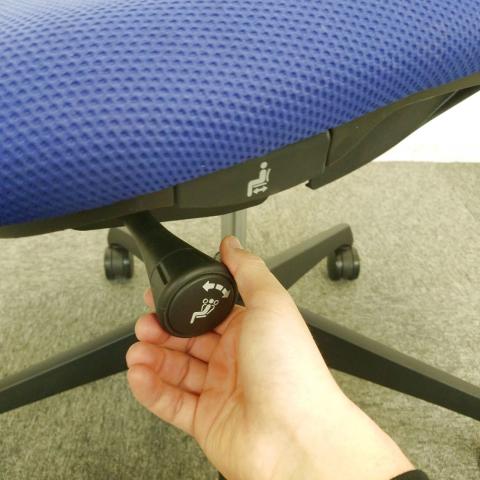 - 座面右下のダイヤル操作で、リクライニングの強弱調整が行えます。これまでのダイヤル式よりも、少ない回転数で、最弱?最強の調整が可能です。