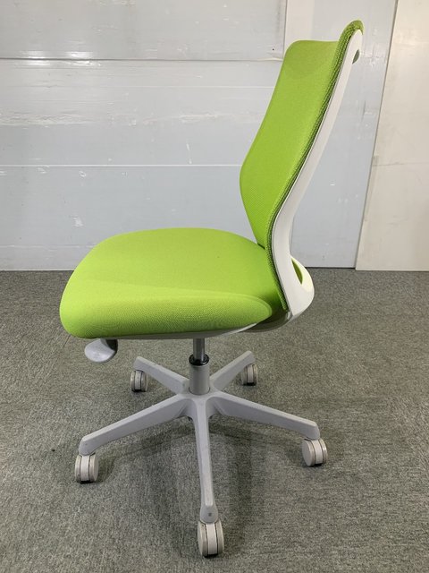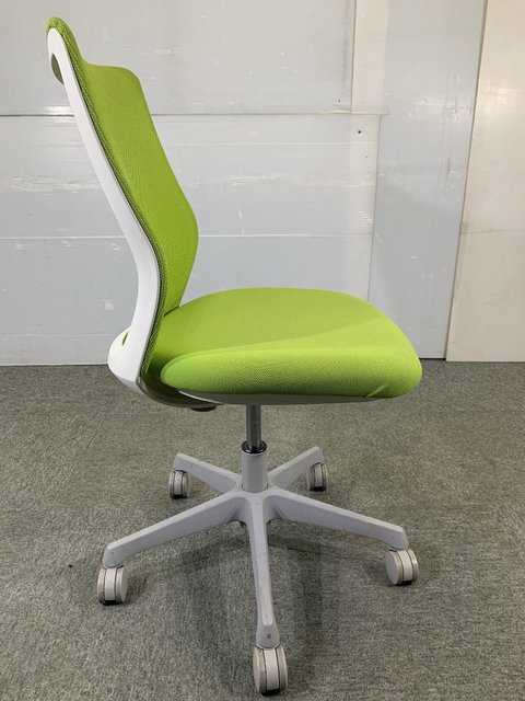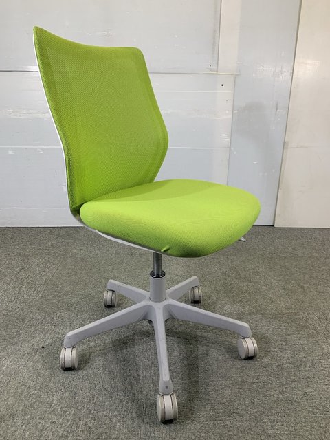【KS】【やわらかな座り心地を実現するメッシュチェア!】■オカムラ製 シージーエムチェア ライムグリーン ■腰への負担を減らすS字形状!【CG-M】- 茨城南店