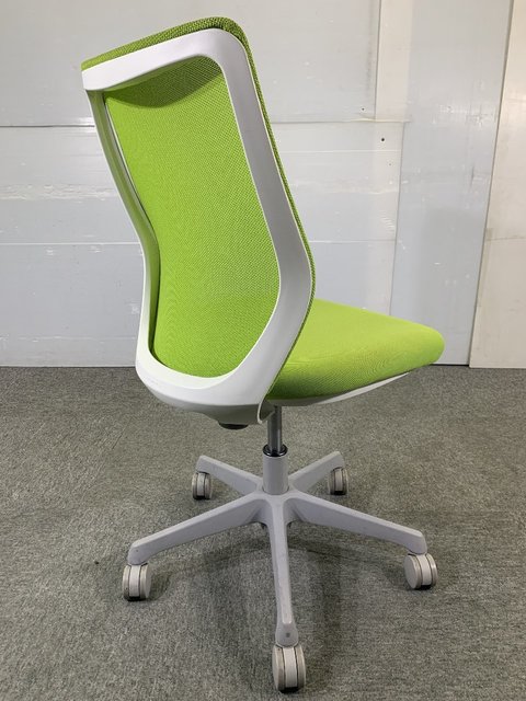入替セール品につきお値下げ!【やわらかな座り心地を実現!腰への負担を減らすS字形状!】■オカムラ(okamura)製 CG-Mチェア 肘無し ローバックチェア パッド仕様 ■ライムグリーン