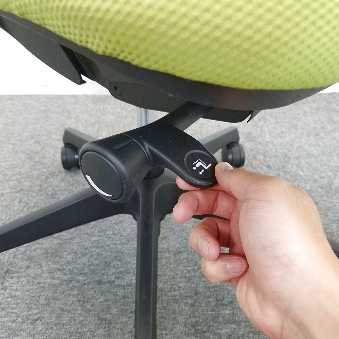 - 座面右下のダイヤル操作で、リクライニングの強弱調整が行えます。これまでのダイヤル式よりも、少ない回転数で、最弱?最強の調整が可能です。
