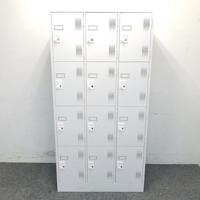 【KS】【ダイヤル錠で施錠管理バッチリ!】■12人用ロッカー ホワイトグレー ■鍵紛失の心配なし!- 茨城南店