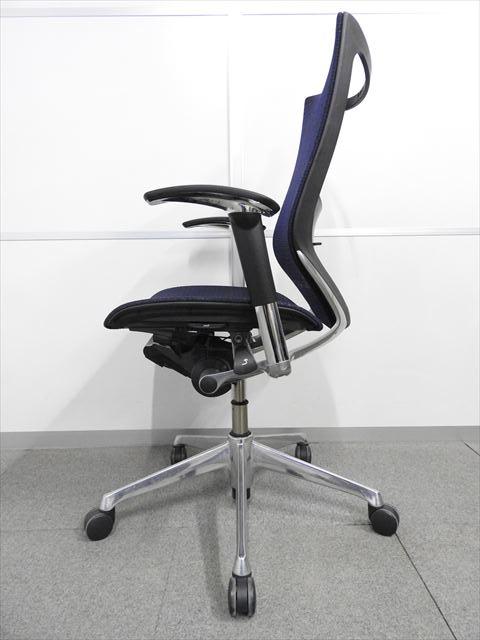 【オフィスの執務室、会議室におすすめ!】■オカムラ(okamura)製 バロン(Baron)チェア 肘付き ハイバック 背面メッシュ ■可動肘 ■ダークブルー × ホワイトシェル【硬めの座面が大人気!国産メッシュチェアの代表格!】【状態良好品!】