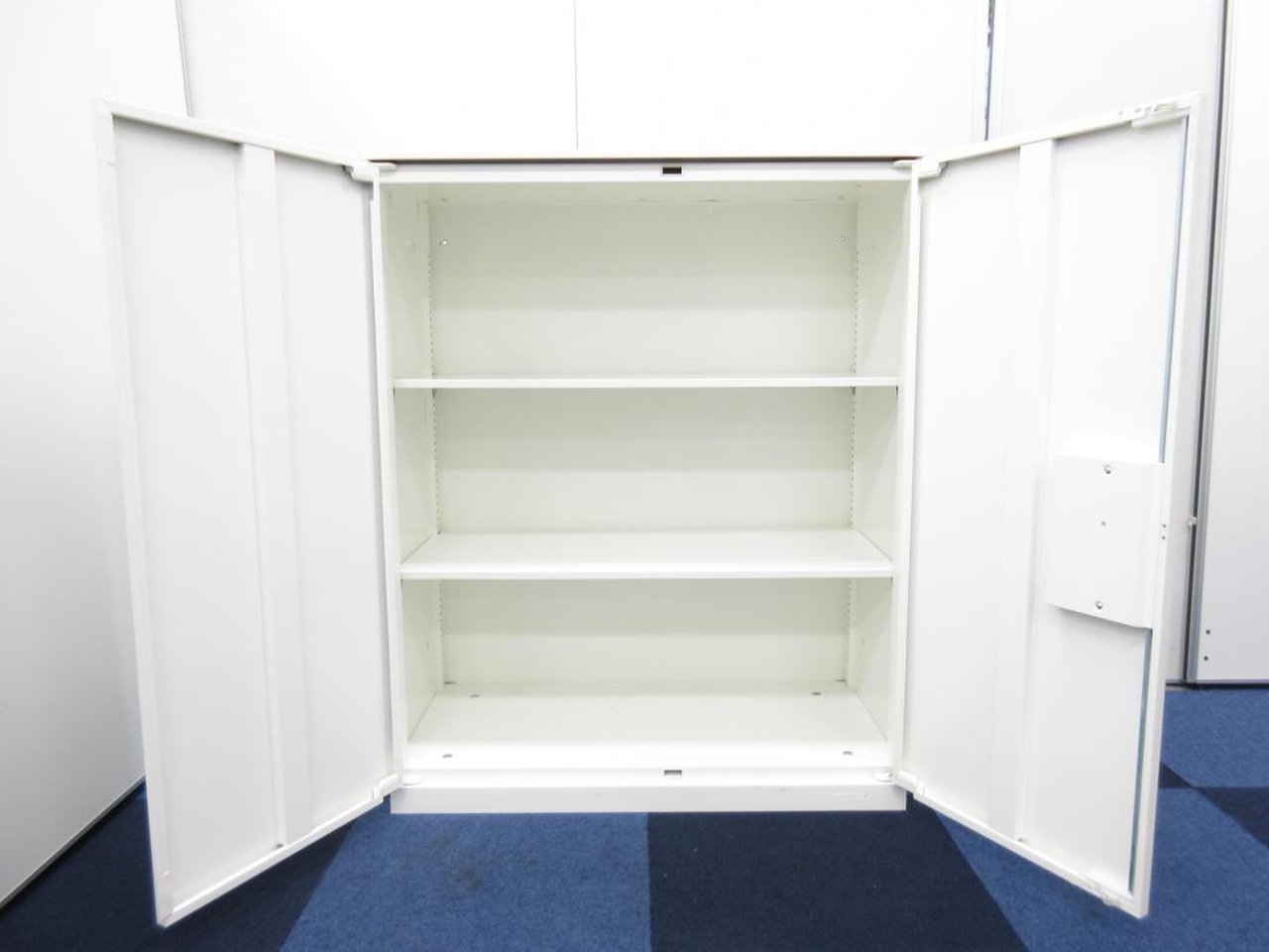 定番サイズ オカムラ/レクトラインシリーズ カラー:ネオホワイト 両開き書庫 鍵付き シリンダー錠 天板無し