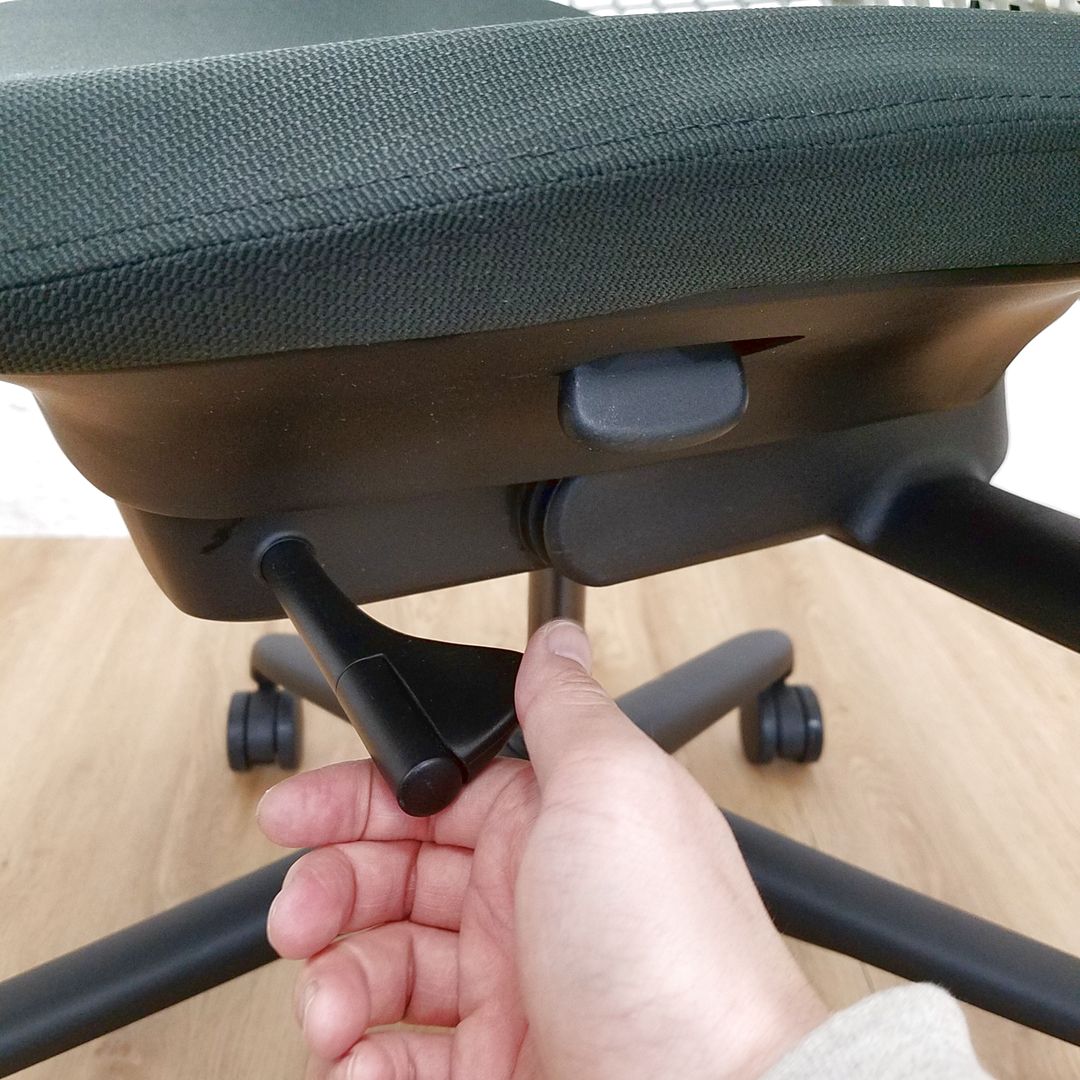 - 座ったまま、レバー操作一つで、簡単に座面を前傾できます。前傾姿勢を取ることが多いデスクワーカーに最適です。