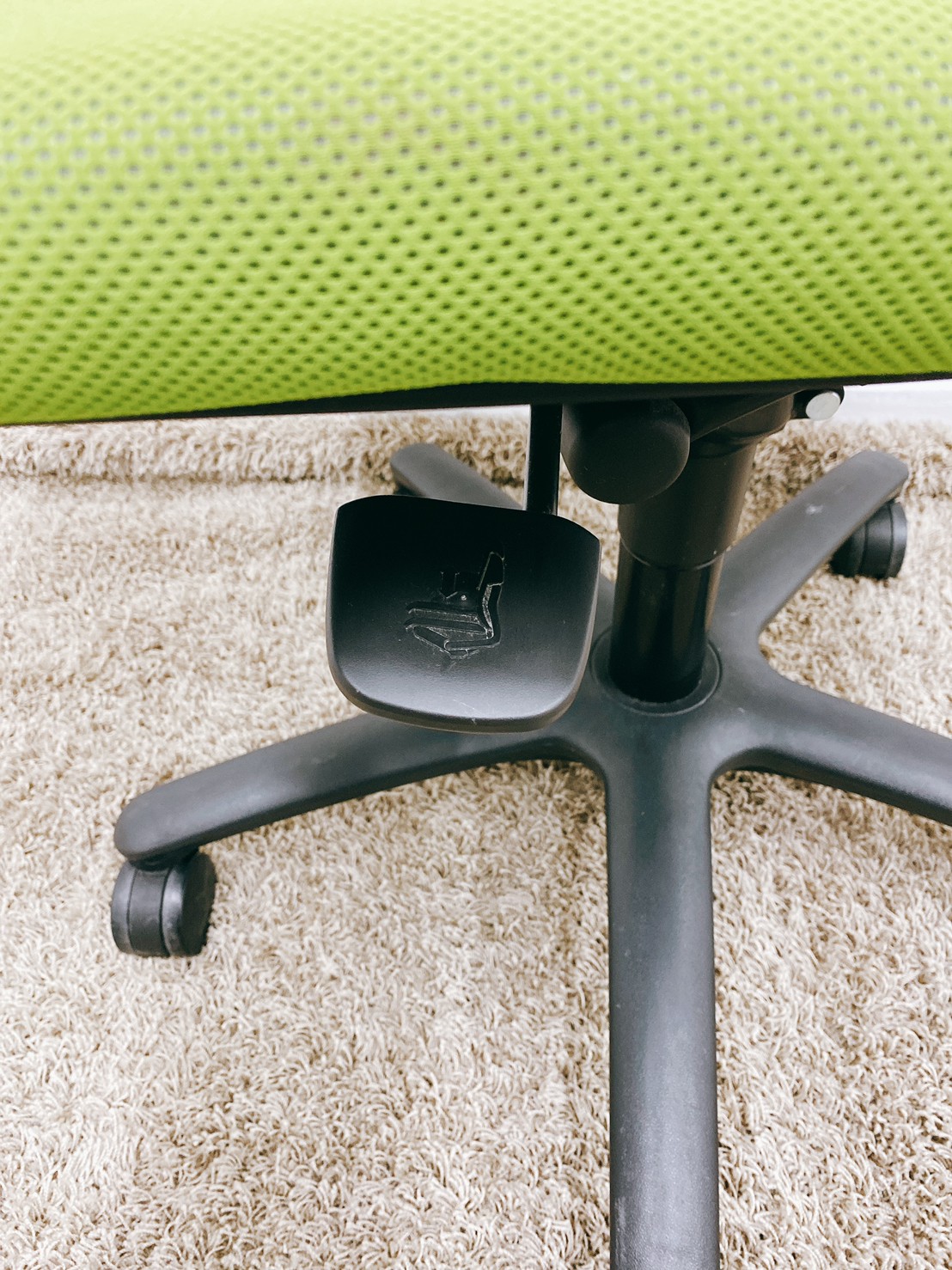 座面の上下昇降は左下のレバーにより、