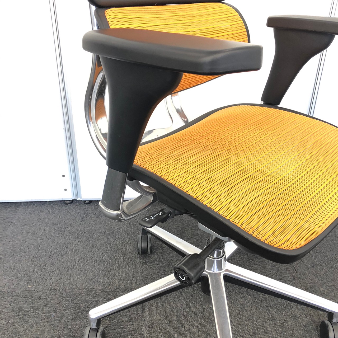 エルゴヒューマンチェア|関家具|オレンジ|座面・背面メッシュ|稼働肘|ハンガーオプション付き- 豊中・尼崎店