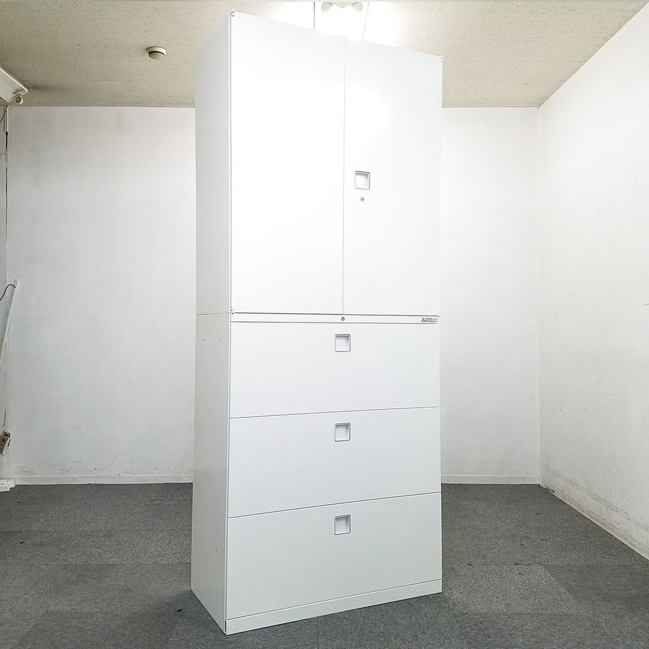 【レア!】高さ2000mmの観音開きと3段ラテラルの書庫セット!2150mmでは入らないオフィスに最適!【在庫入替セール品!】 ■オカムラ/レクトライン/ネオホワイト
