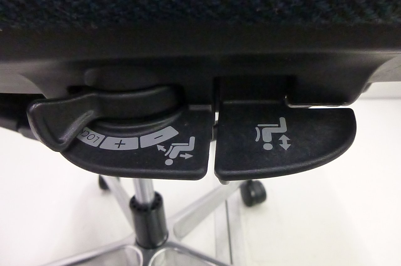 - 座面の高さ調節や背と座がシンクロしてスライドするアンクルチルトリクライニングなど、基本的な調節機能を搭載。