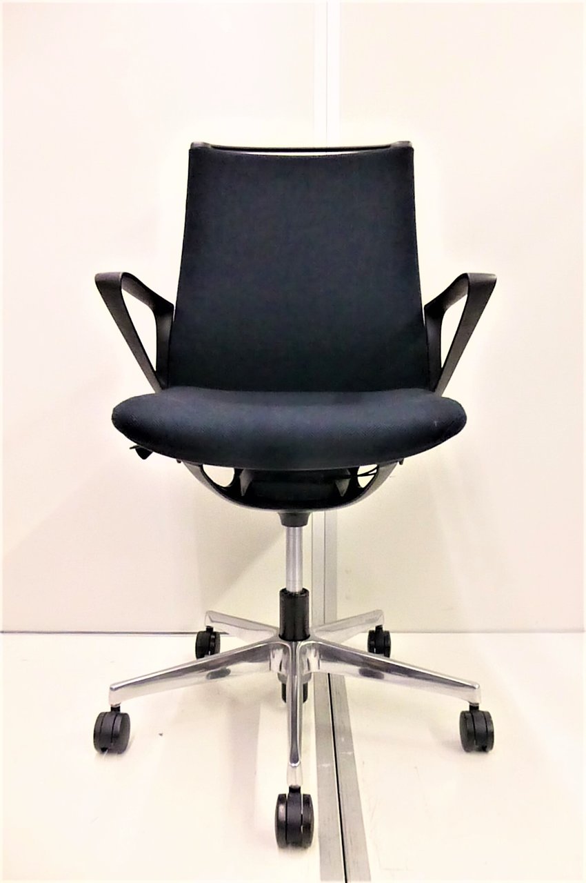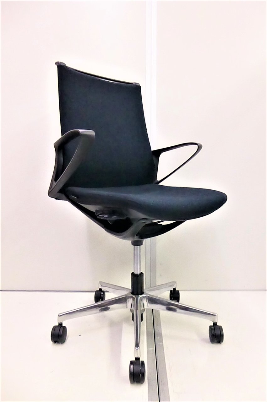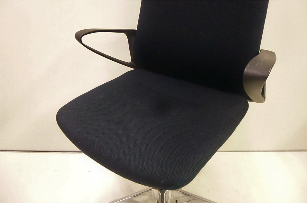【モダンな空間を演出!】■オカムラ製 モードチェア 肘付 ダークブルー ヘリンボーンクロス在庫がある店舗一覧