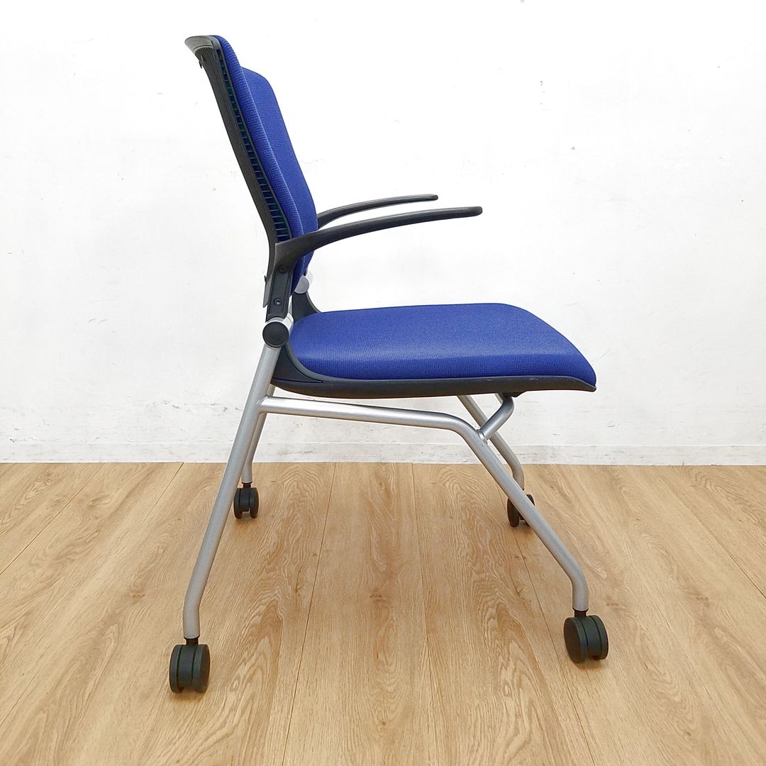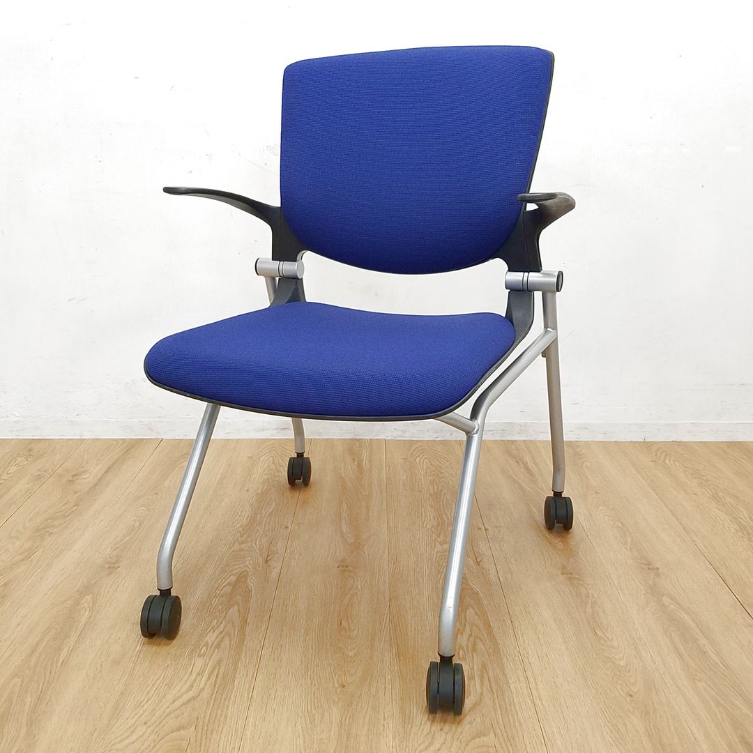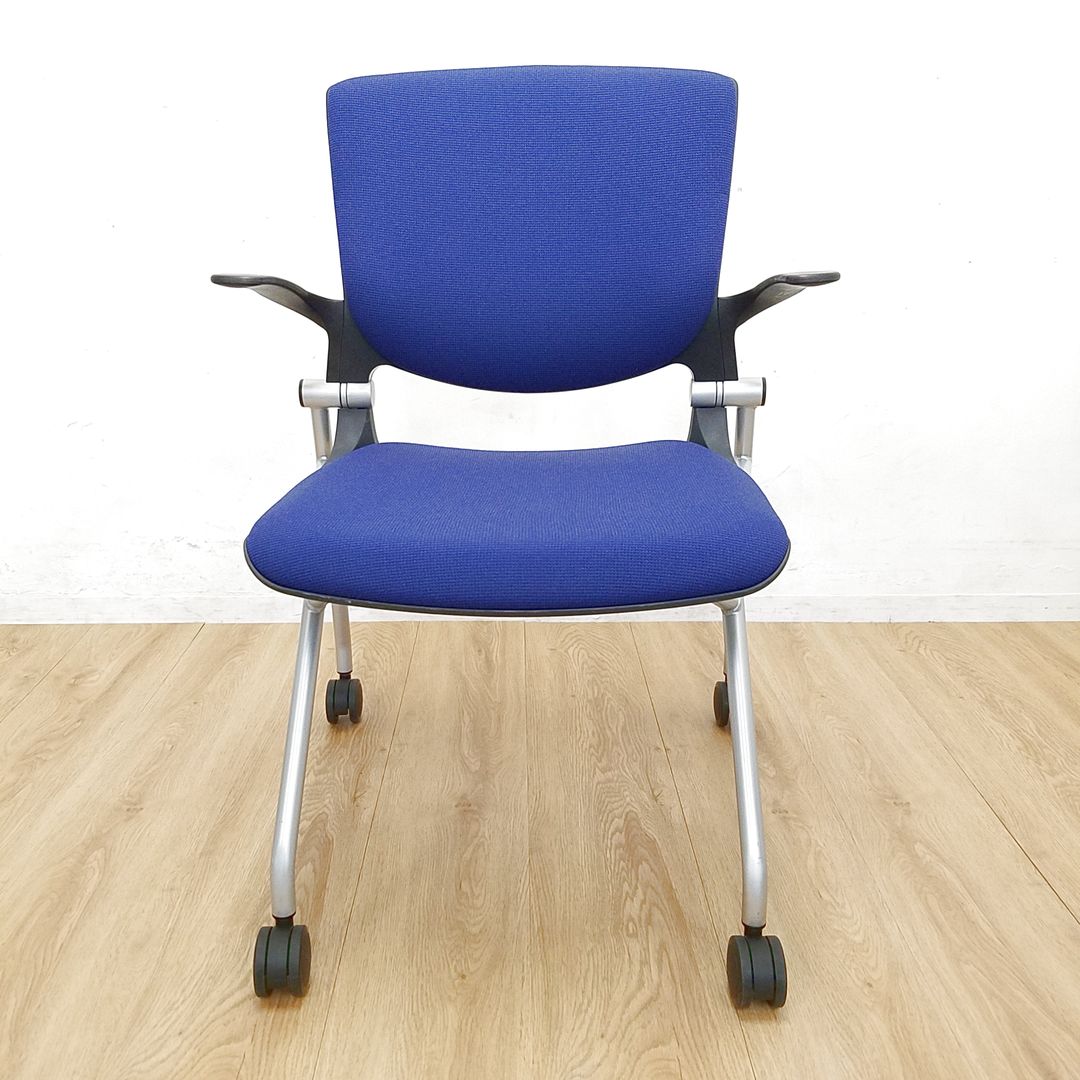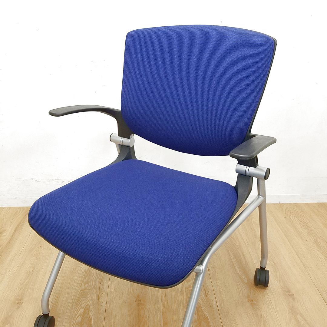 小肘付ネスティングチェア/背面クッション付き/ネイビー/オカムラ製/福岡/天神/博多/中古/安い