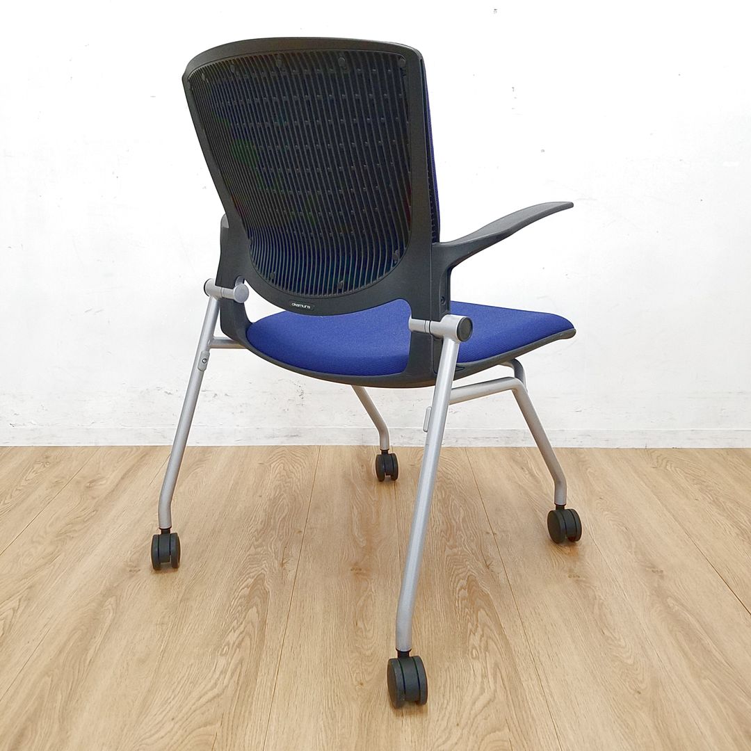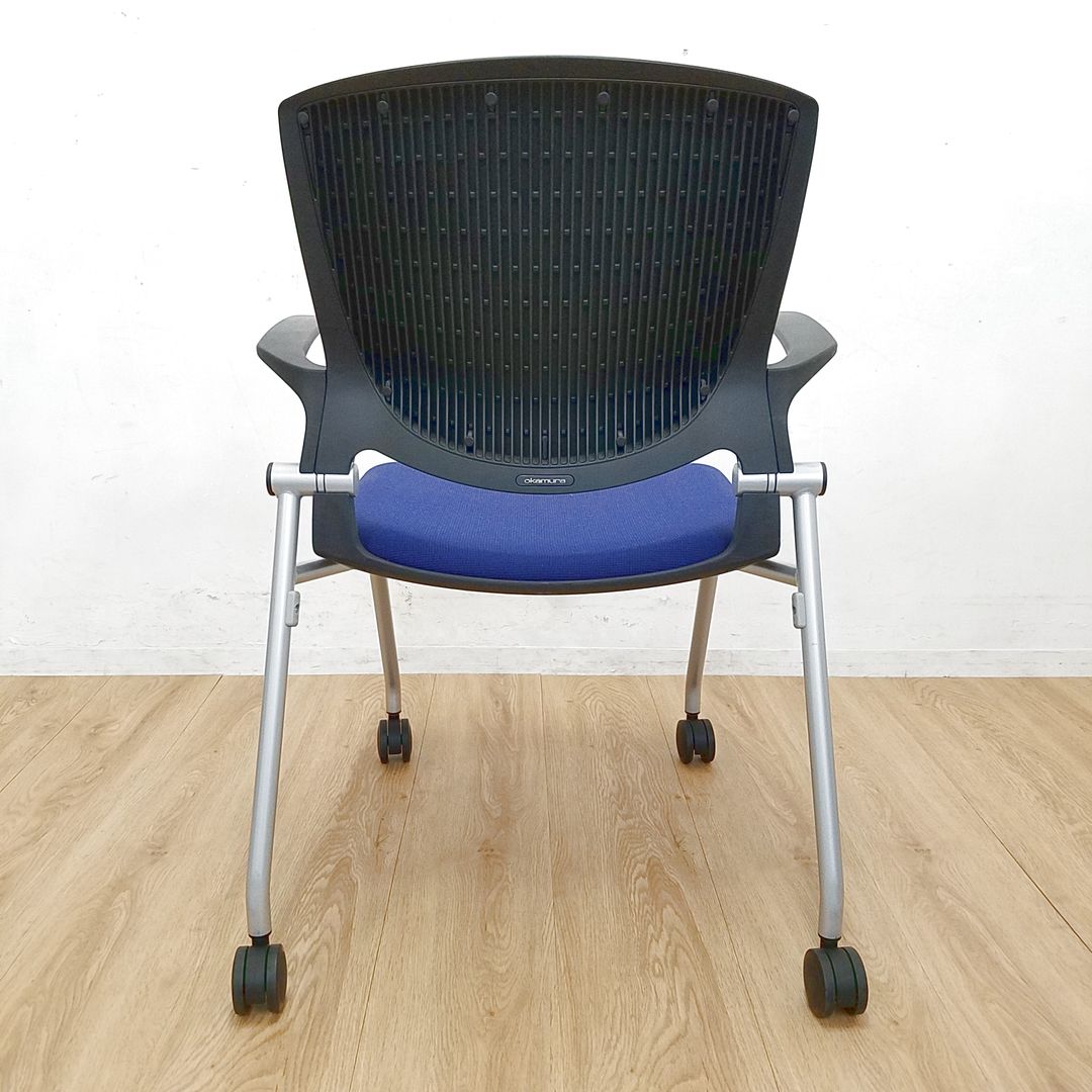 【しなやかにワーカーを受け止める洗練されたデザイン!使わない時はネスティング収納!】■オカムラ(okamura)製 グラータ(Grata) ミーティングチェア ネスティング ■背面樹脂メッシュ ■ブルー