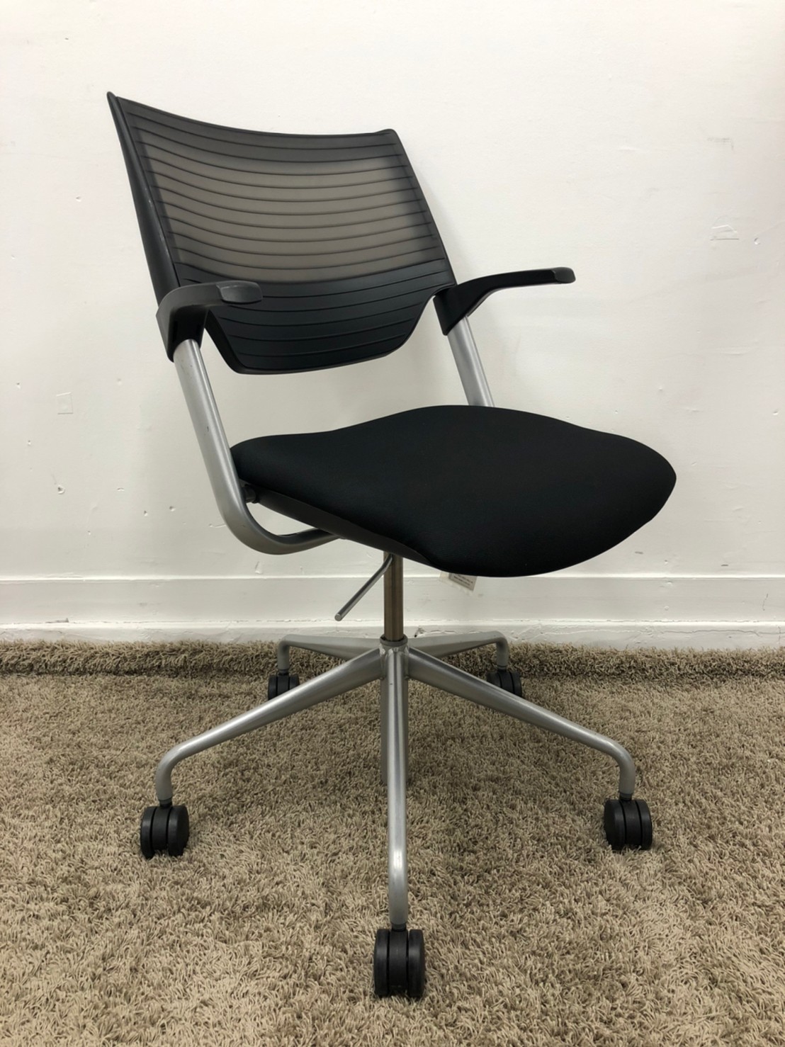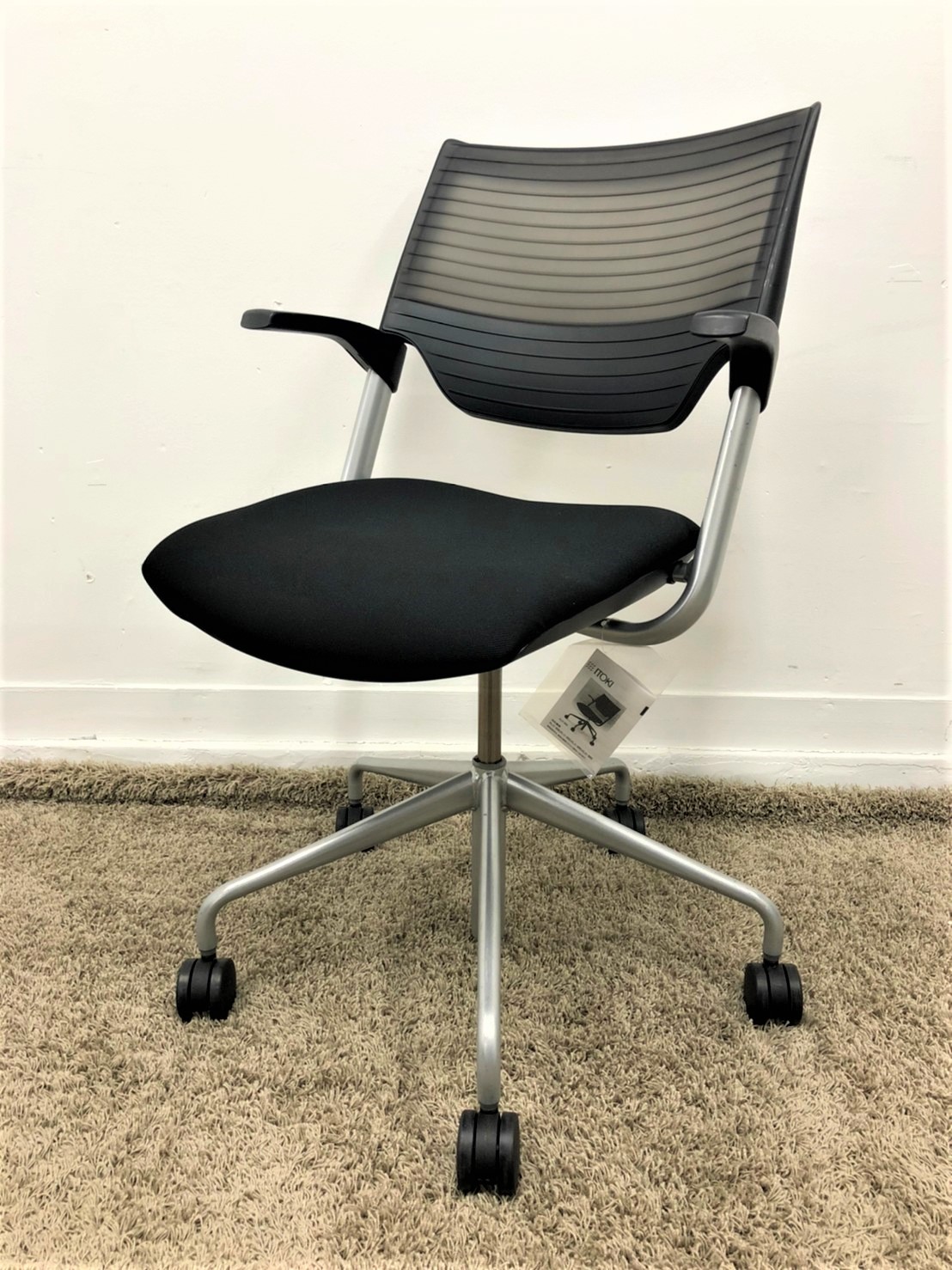【KS】【上質なデザイン!】■イトーキ製 レクシブチェア 肘付 ブラック 回転脚タイプ エラストマーバック ミーティングチェア- 茨城南店