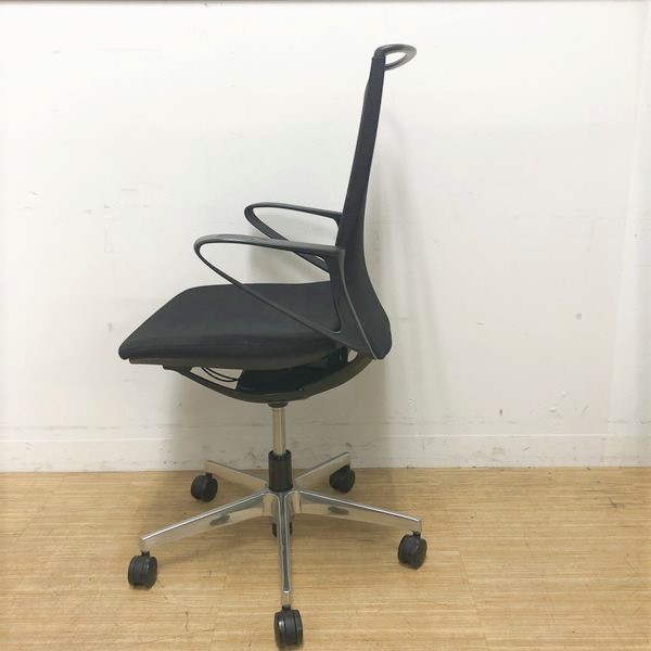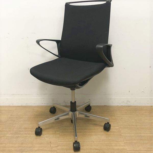 【在庫入替セール】オカムラ モード デザインアーム搭載 ミドルバック ブラック×アルミ脚 張地:クロス(プレーン) 高いデザイン性×シンプルかつ操作性のある機能