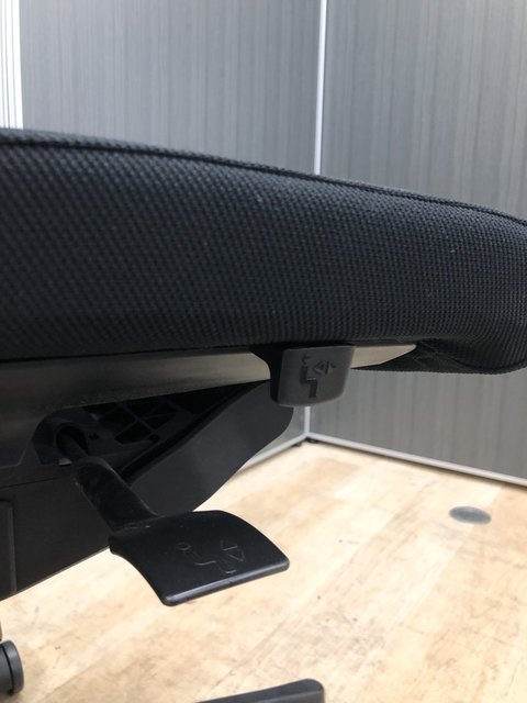 - 座面下のレバー操作により、座面を50mmのストローク(16.7mmピッチ)で好みの位置に調節できます。体格や作業姿勢に合わせたポジション設定が行えます。