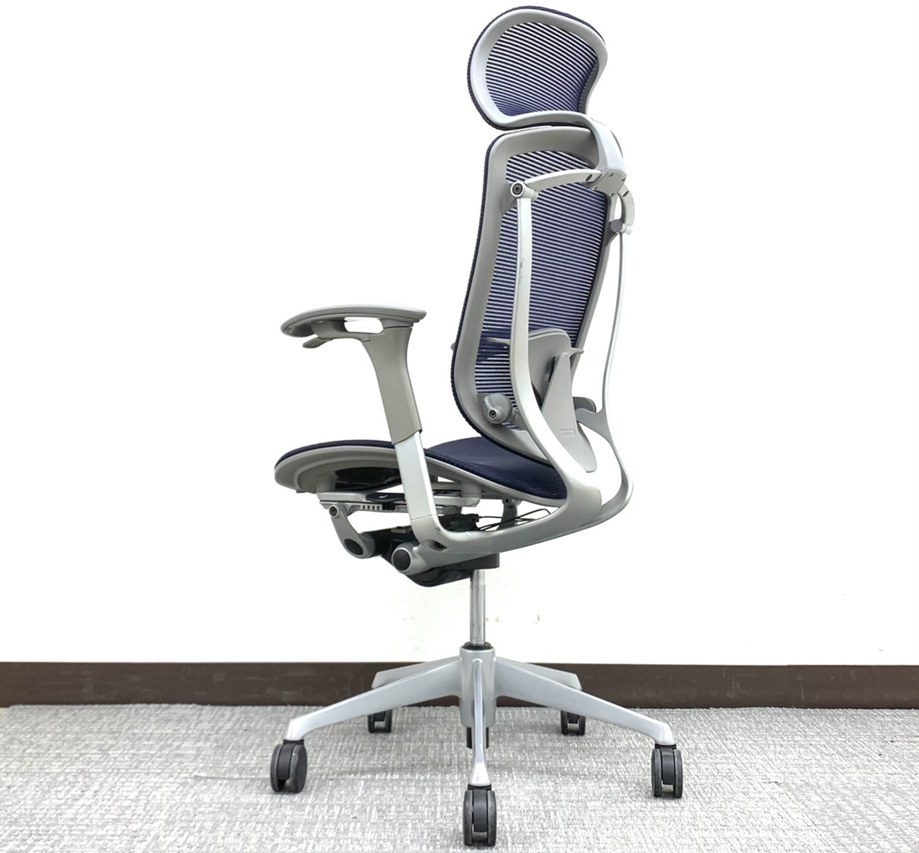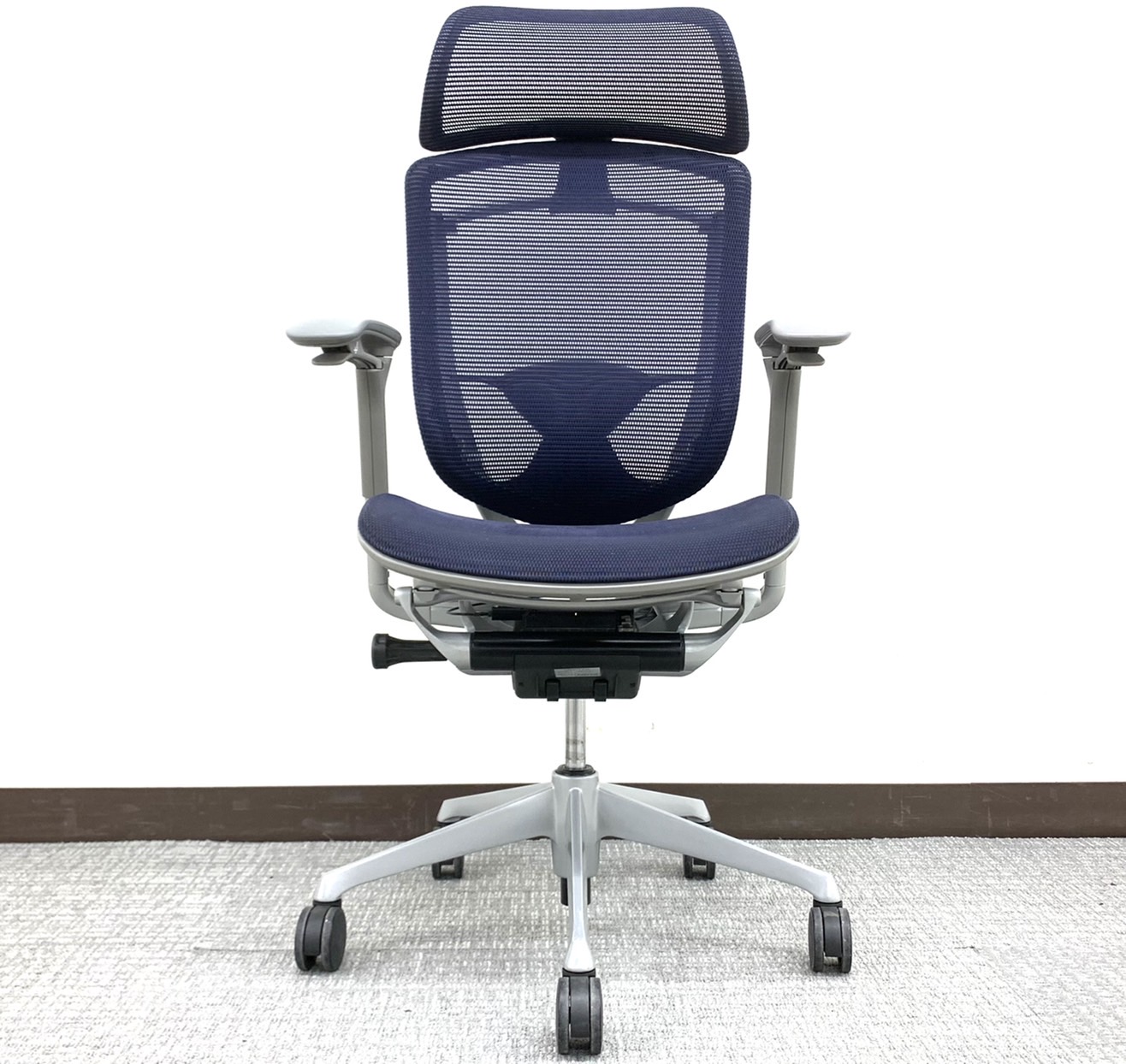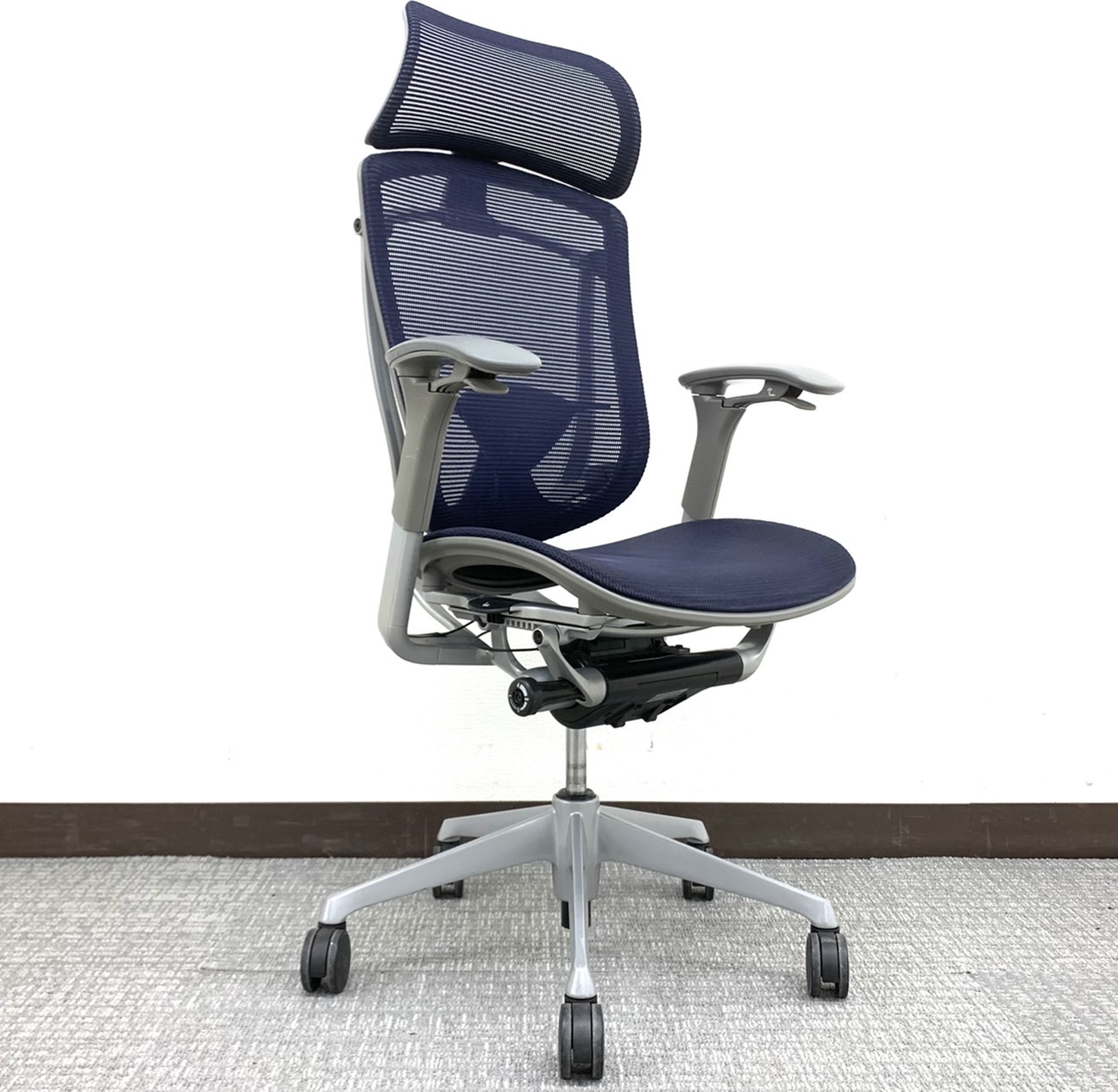 【オカムラ製の最高級チェアが残り1脚限りです!!】オフィスバスターズ 東大阪店 オカムラ製 コンテッサ シリーズ ダークブルー アジャストアーム※可動肘 背/座面メッシュ ランバー 世界で認められた革新的タスクチェア!人間工学に基づいた快適な座り心地を実現! 肘付きハイバックチェア!! 中古 外部倉庫品