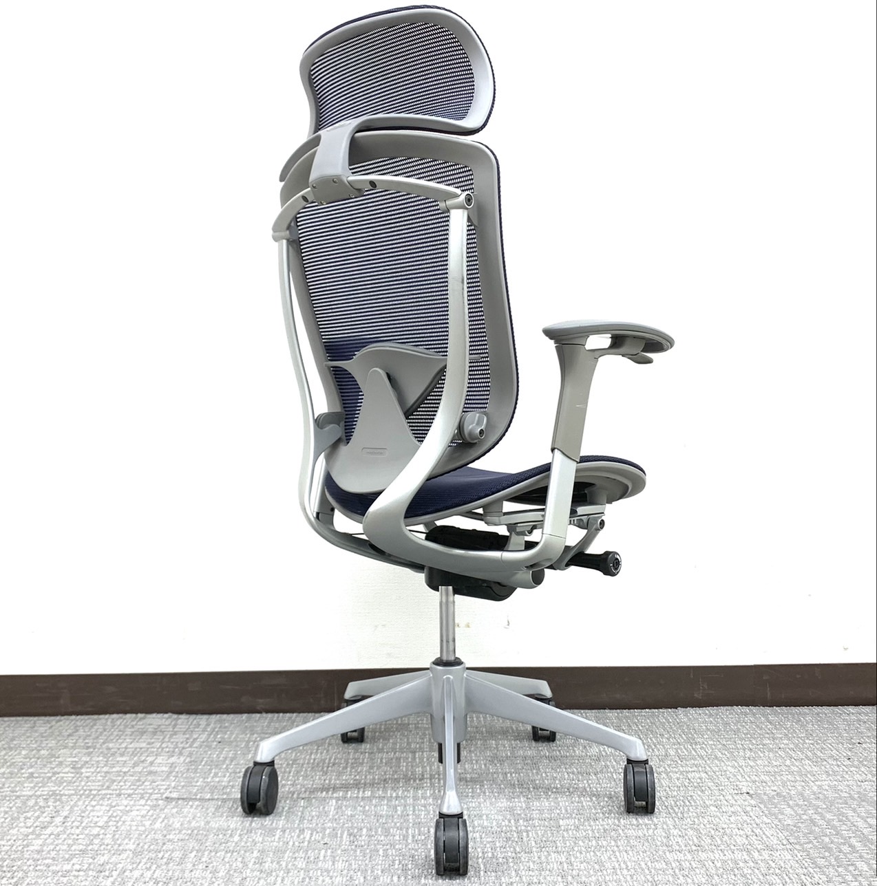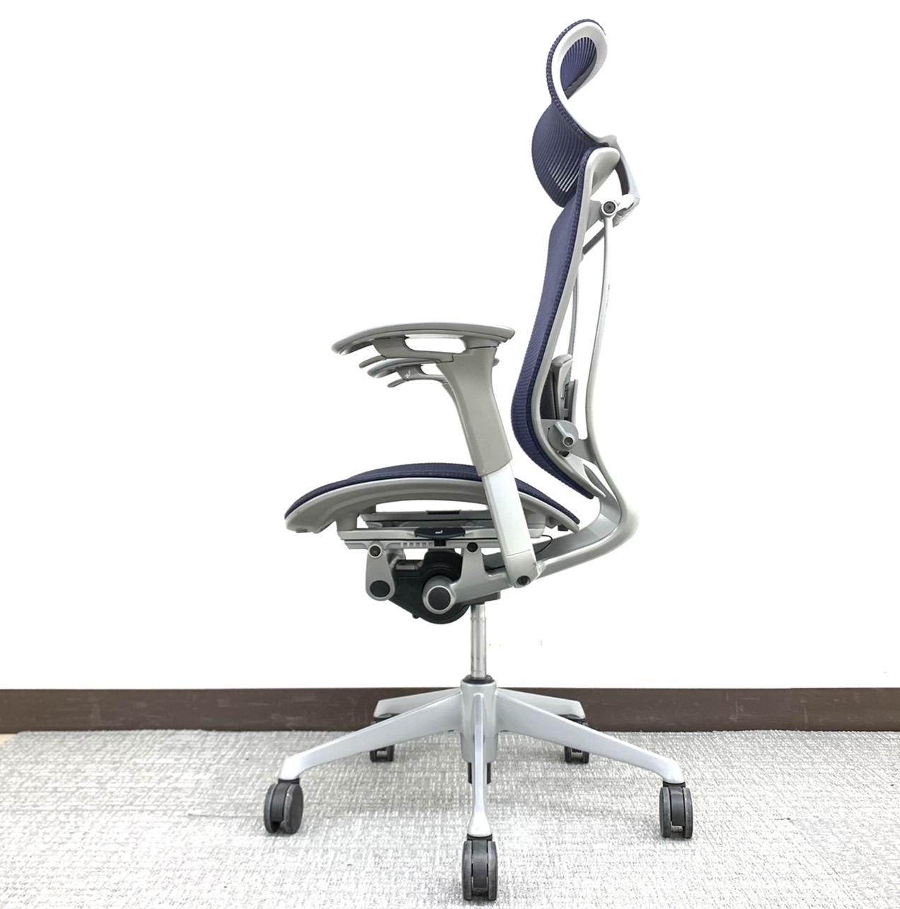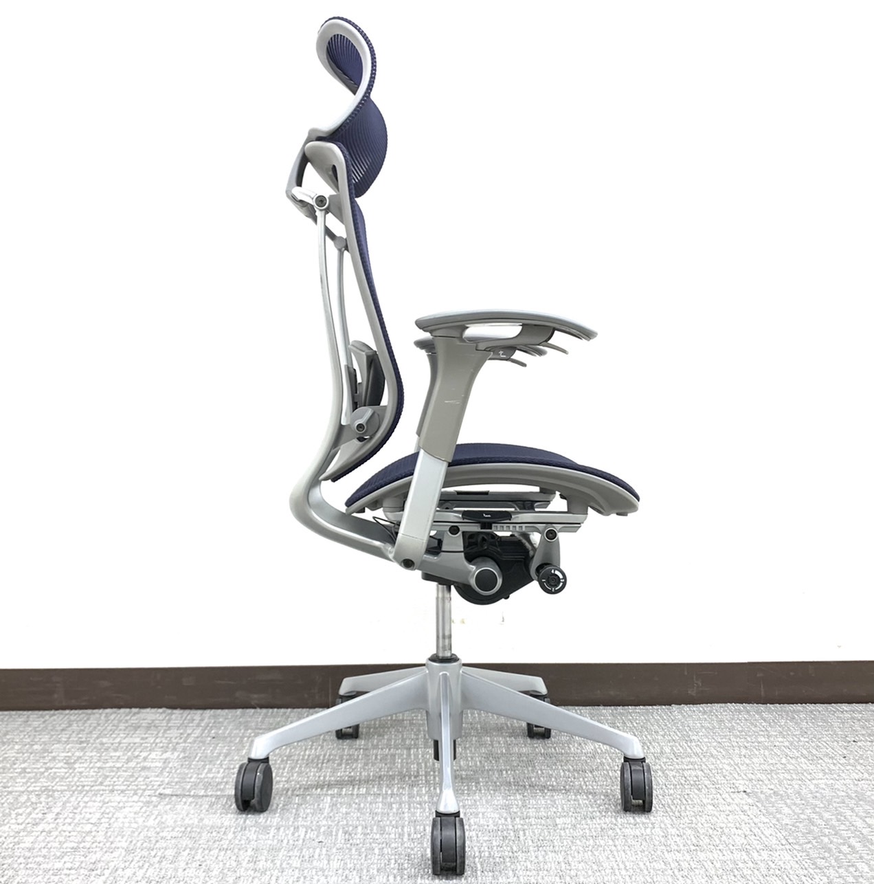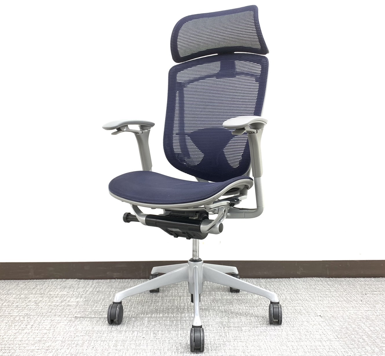 【オカムラ製の最高級チェアが残り1脚限りです!!】オフィスバスターズ 東大阪店 オカムラ製 コンテッサ シリーズ ダークブルー アジャストアーム※可動肘 背/座面メッシュ ランバー 世界で認められた革新的タスクチェア!人間工学に基づいた快適な座り心地を実現! 肘付きハイバックチェア!! 中古 外部倉庫品