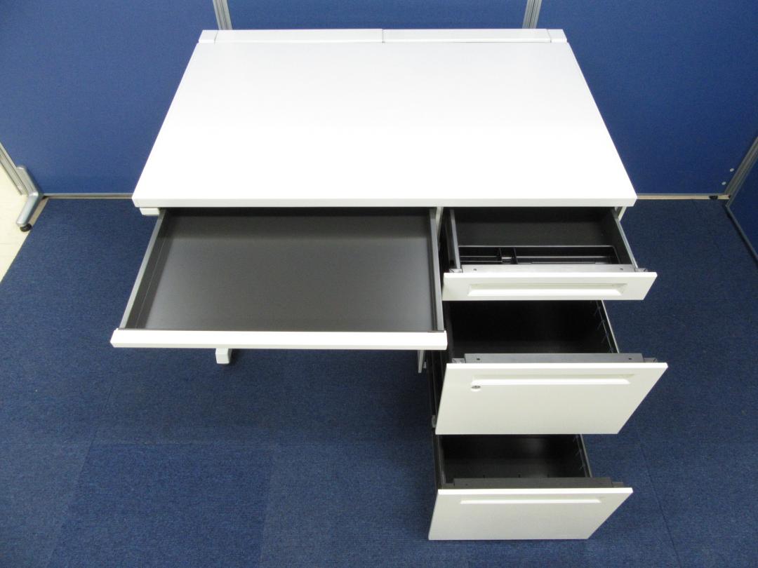 【幅1000㎜タイプのコンパクト事務机!袖引き出しが4段!】 ■オカムラ(okamura)製 アドバンスシリーズ(ADVANCE) 片袖机 W1000×D700×H720㎜ ■ネオホワイト ■シリンダー錠